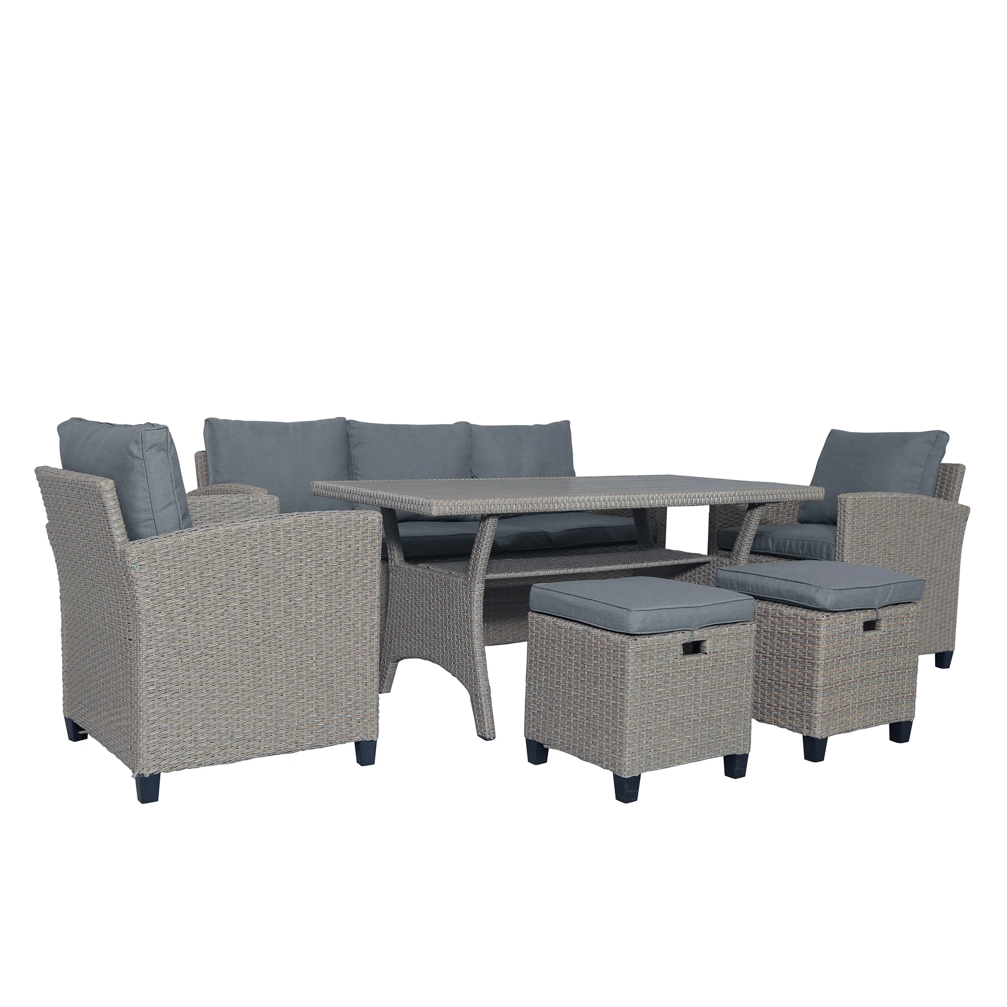 【Enjoy Outdoor Time with Your Family】With two sofa chairs, one 3 seater sofa and two stools, this massive 6 piece set can comfortably seat 7 people while the spacious table is perfect for placing food, drinks, etc., making this set the perfect match for anyone who wants to transform their outdoor space.