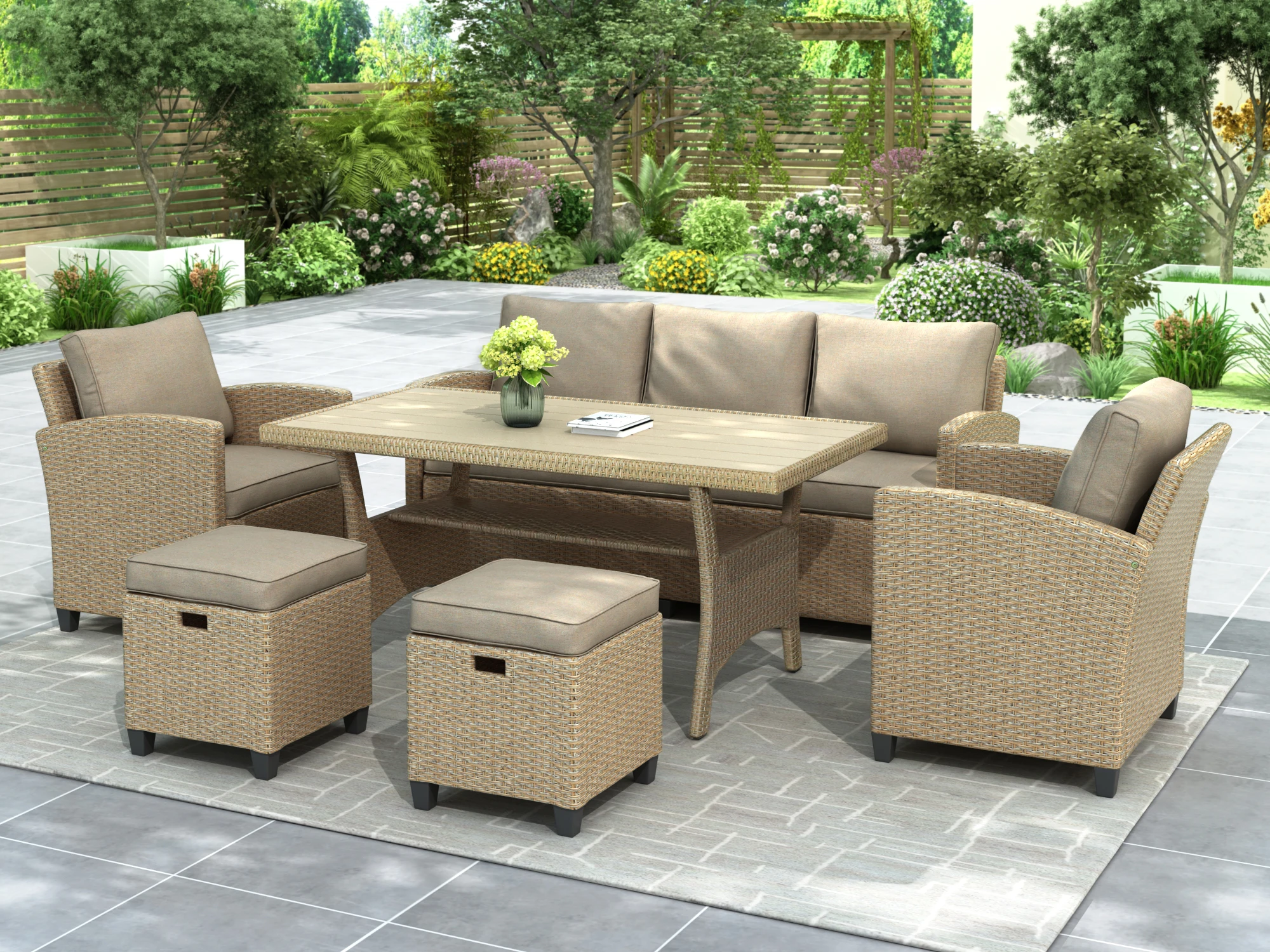 【Enjoy Outdoor Time with Your Family】With two sofa chairs, one 3 seater sofa and two stools, this massive 6 piece set can comfortably seat 7 people while the spacious table is perfect for placing food, drinks, etc., making this set the perfect match for anyone who wants to transform their outdoor space.