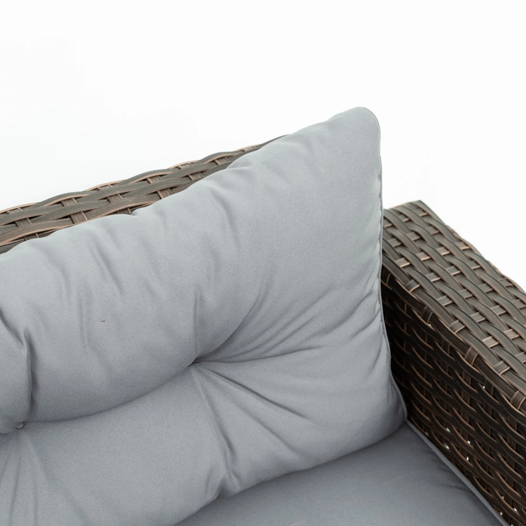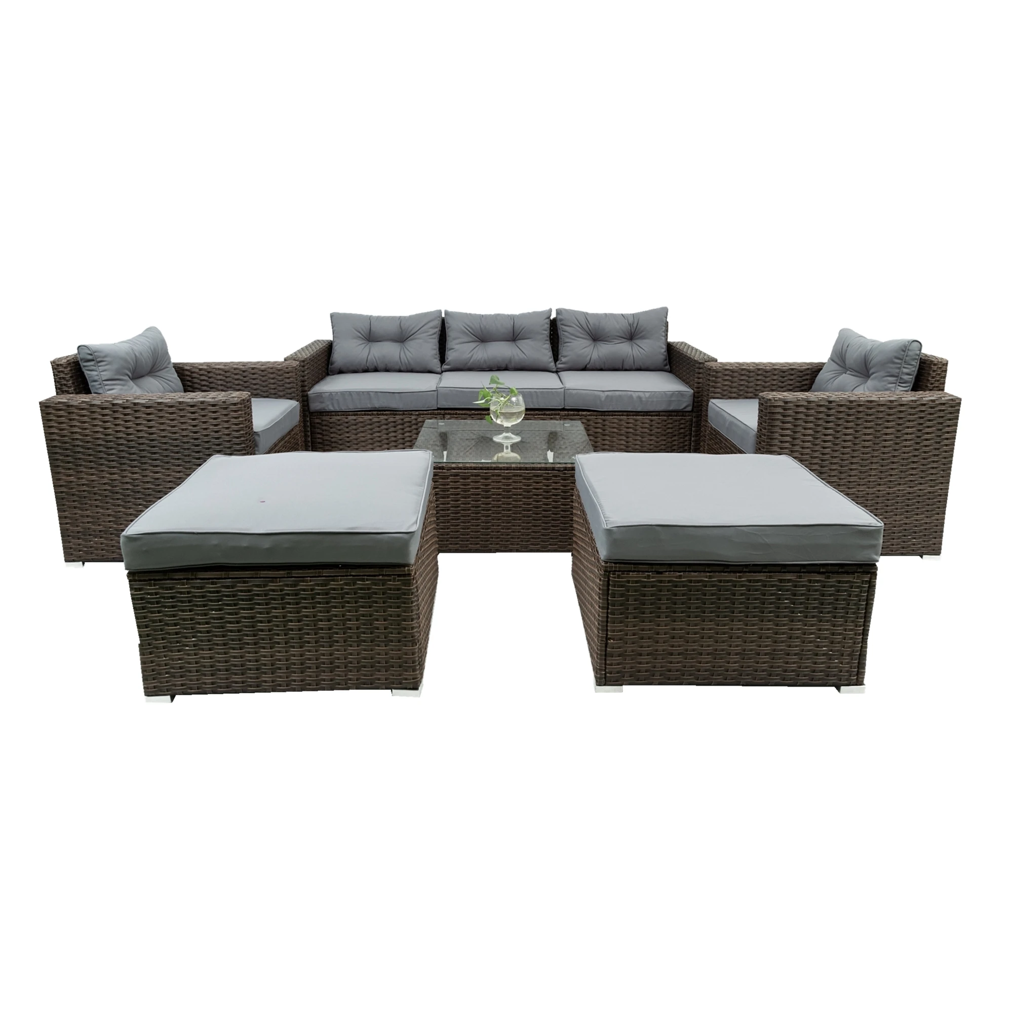 6 Piece Patio Rattan Wicker Outdoor Furniture Conversation Sofa Set with Removeable Cushions and Temper glass TableTop
