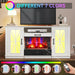 - Versatile Storage Options: This TV stand with fireplace is a sleek storage solution for your miscellaneous items thanks to its large desktop, open cabinet, and two cabinets with window doors and position adjustable shelves on the interior.