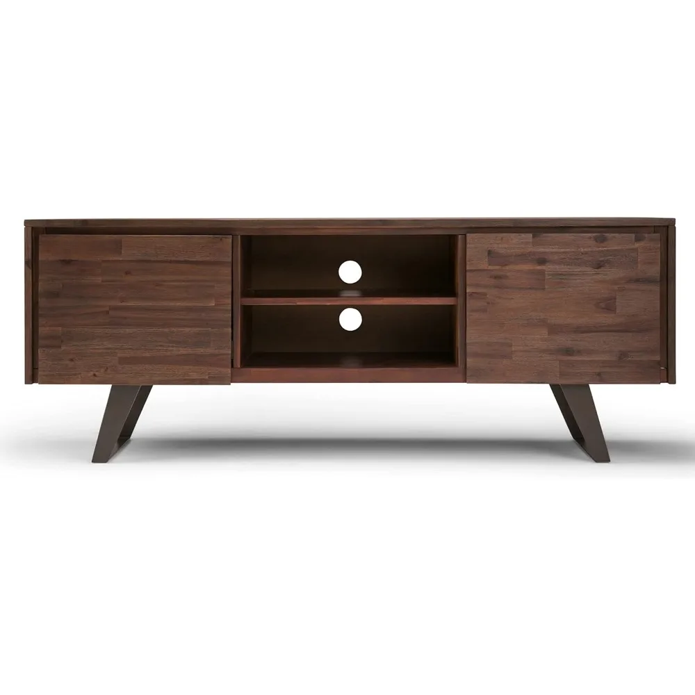 63 inch wide modern industrial TV media stand in low-quality charcoal brown for living rooms and entertainment centers