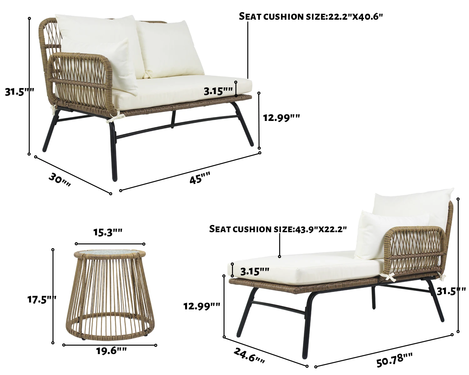 Modern Design : With clean lines contrasted perfectly by its round edges, the natural and beige color offers a sleek, minimalistic look. This rattan conversation set is the ideal modern accessory for your outdoor space.