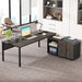 This executive computer desk offers a spacious work area measuring 70.8"W x 31.49"D, along with a 47.2"W x 15.7"D filing cabinet for additional storage, providing you with ample space to organize your office essentials. Multiple storage options - including a drawer, filing cabinet, and CPU and file shelves - facilitate orderly workspace management. The high-quality board and rugged metal frame construction guarantee rock-solid stability and lasting durability, complemented by a scratch-resistant finish. An L-shaped design, featuring unique stitching and industrial aesthetics, offers versatility for various spaces while promoting high productivity. The product also assures easy assembly with provided accessories and clear instructions.