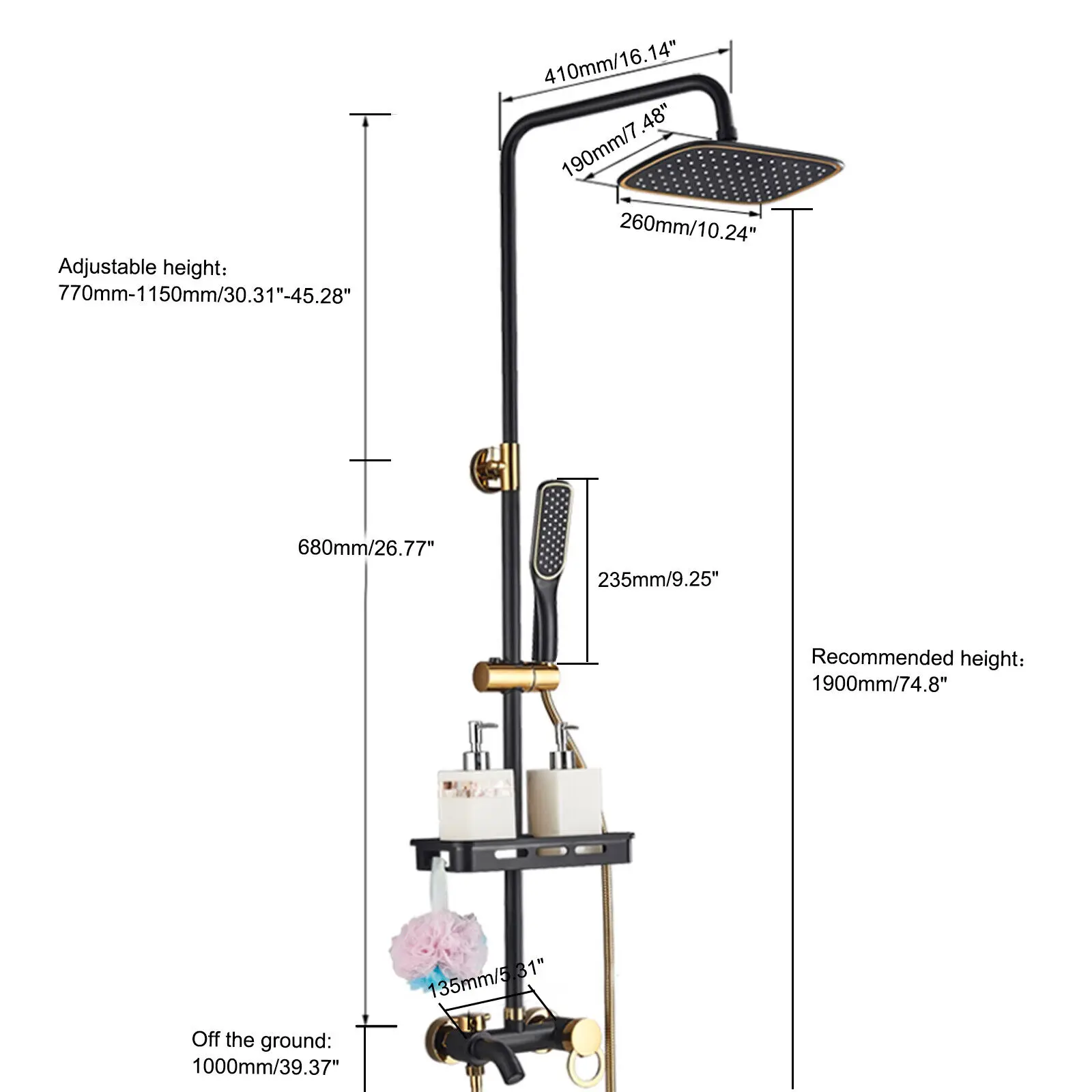 8'' Black Bathroom Rainfall Shower Faucet Set Tub Mixer Tap with Hand Spray