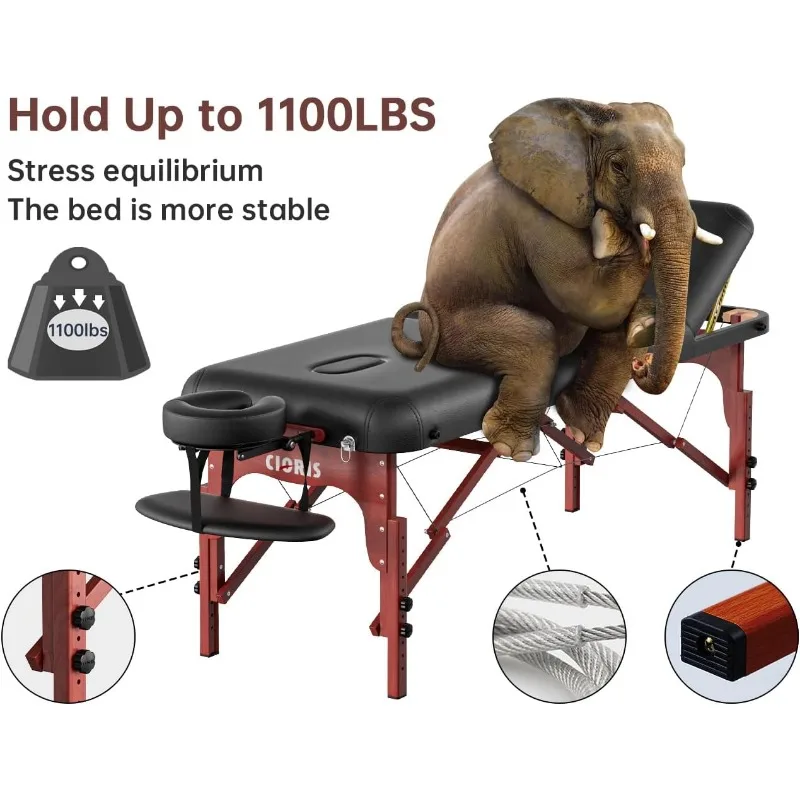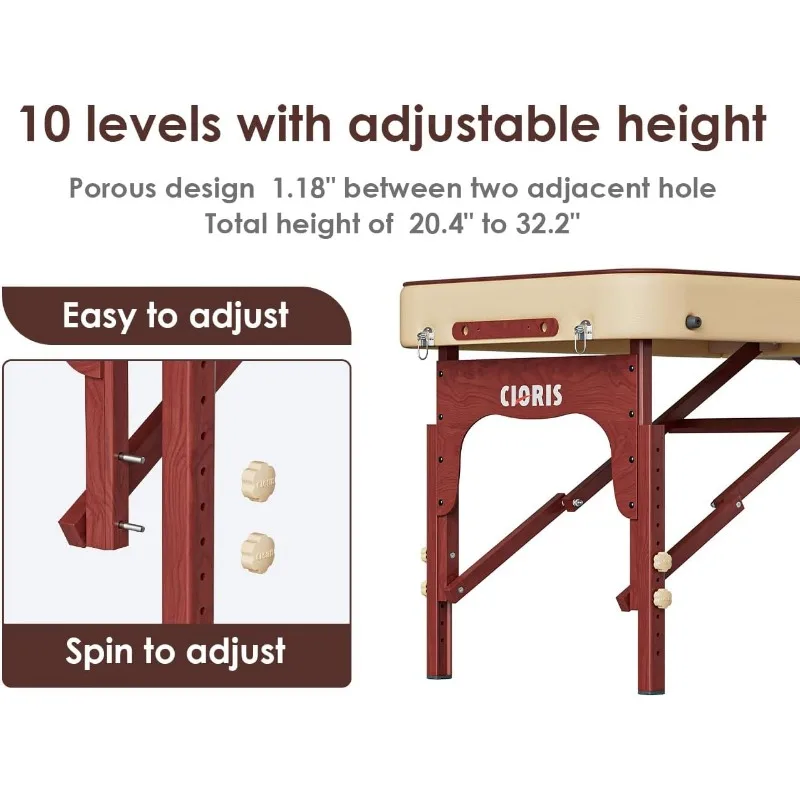 - ❸【HUMANIZED HEIGHT ADJUSTABLE】Multi-row hole position height-adjustable device are equipped on the every sturdy feet of the massage bed, 1.2" between adjacent holes offer quick and easy height adjusted from 23" to 33".