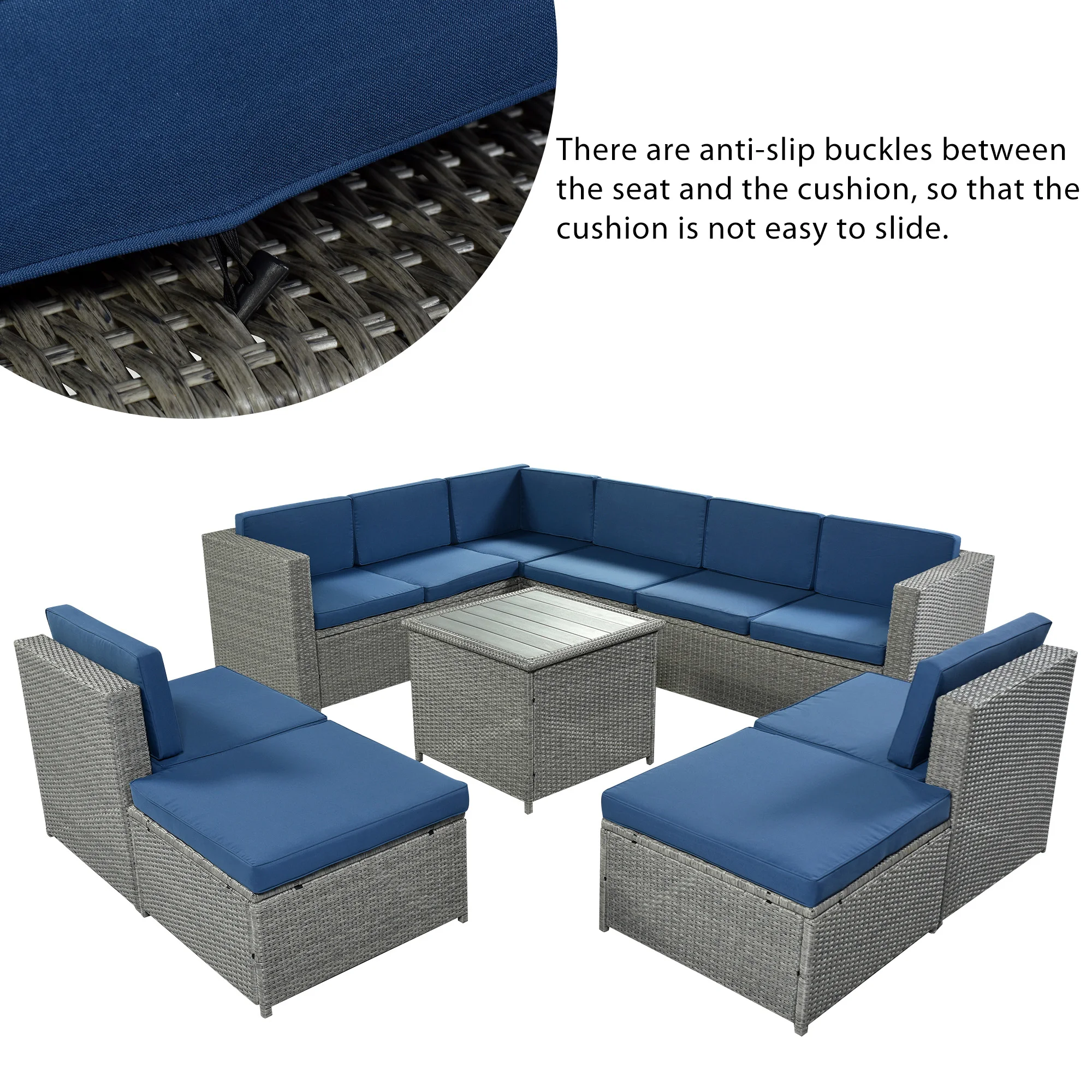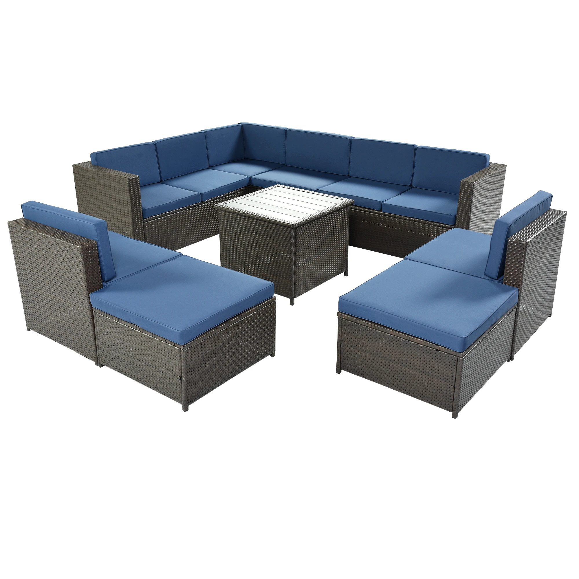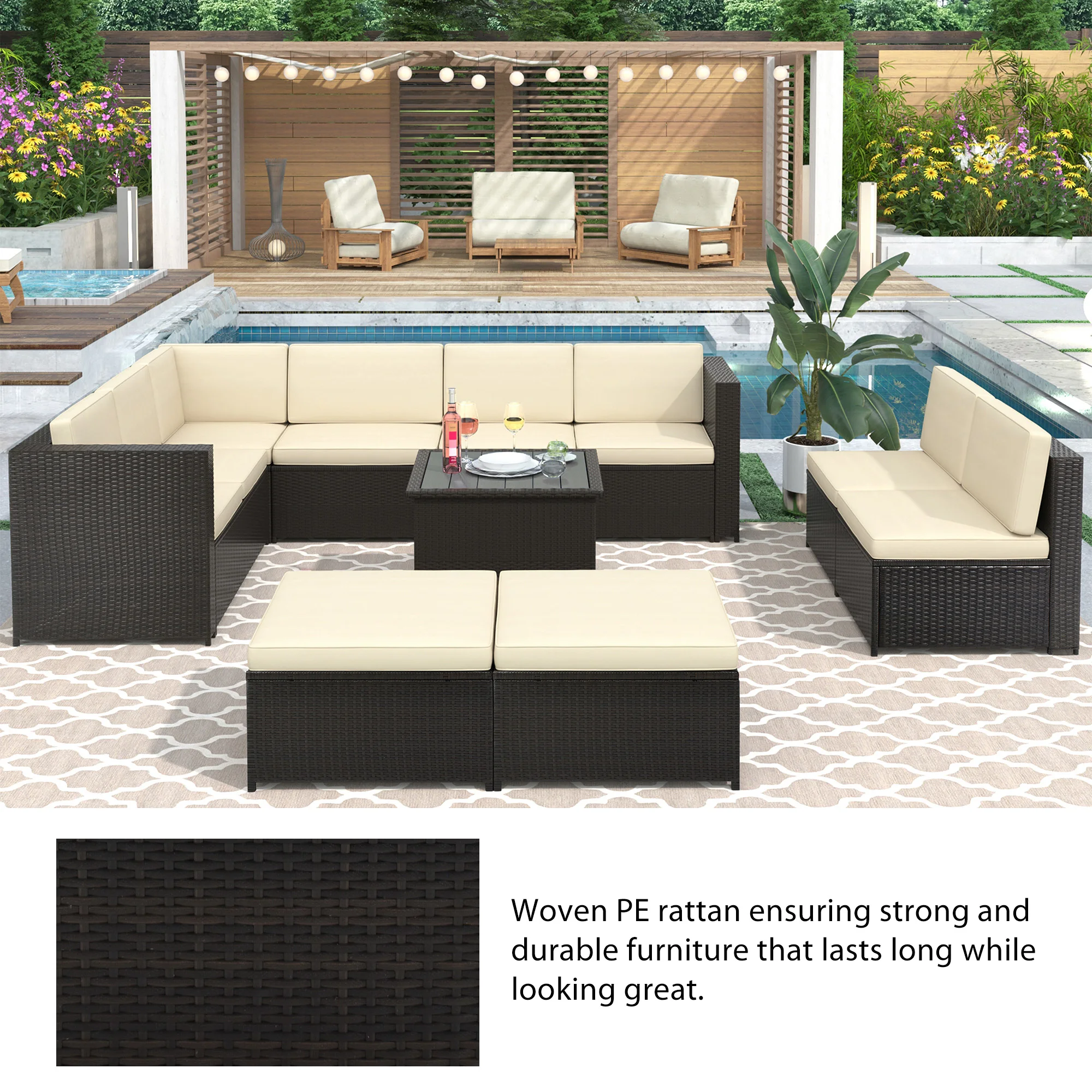 9 Piece Rattan Sectional Seating Group with Cushions and Ottoman, Patio Furniture Set, Outdoor Wicker Sectional