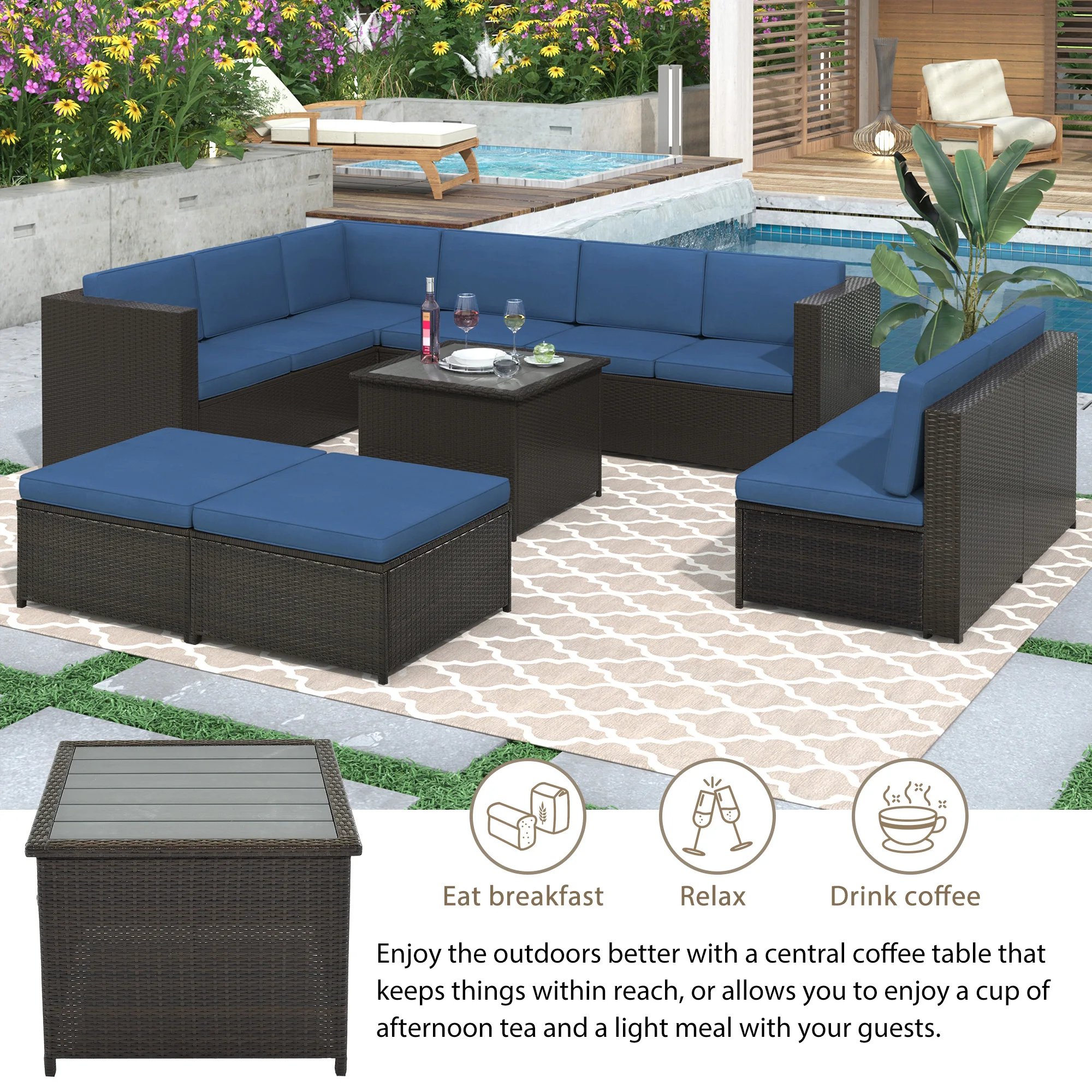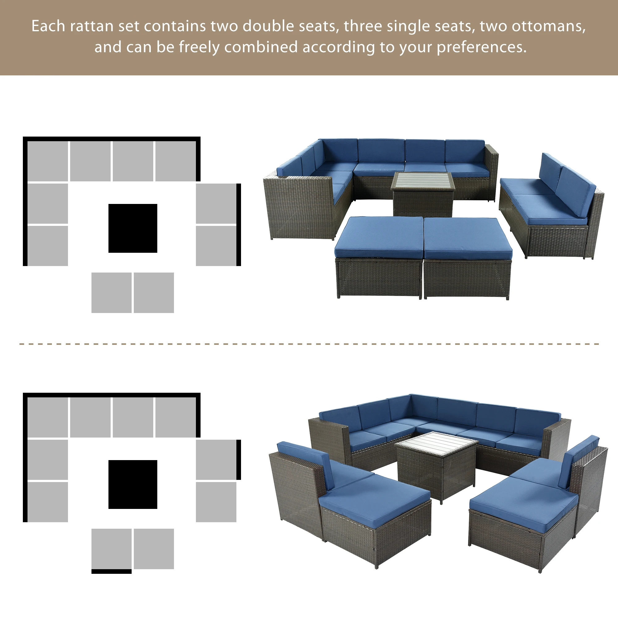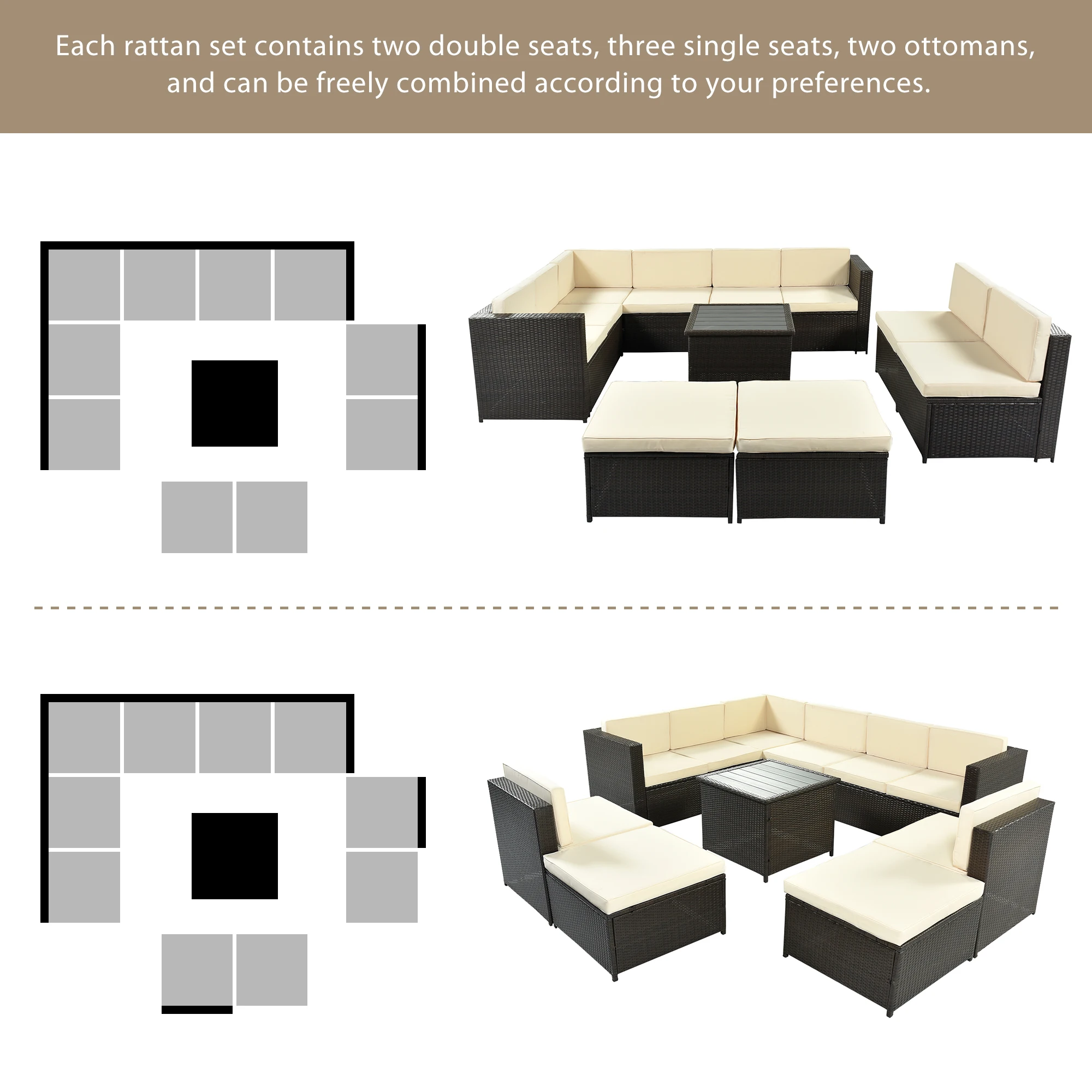9 Piece Rattan Sectional Seating Group with Cushions and Ottoman, Patio Furniture Set, Outdoor Wicker Sectional