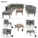 This 9-piece outdoor dining set includes 3 Armless Chairs, 2 Arm chairs, 2 Corner Chairs, 1 Ottoman, and one coffee table with Acacia wood table top. You can arrange them to different layouts and combinations, so that whatever you want to relax and lie in the sofa or communicate with your friends, this wicker product is the best choice for you.