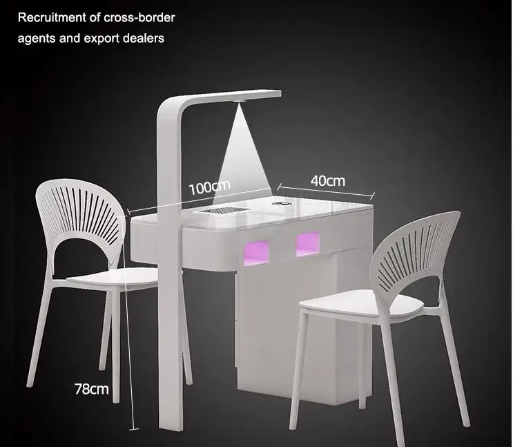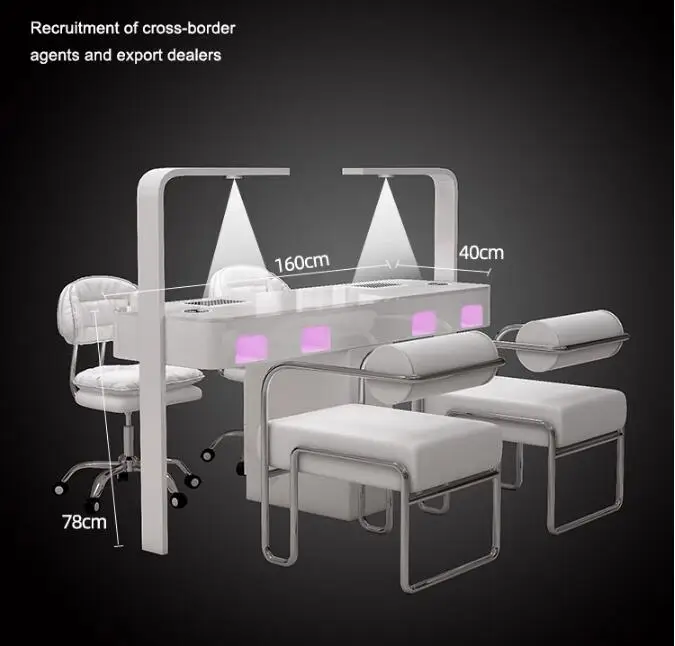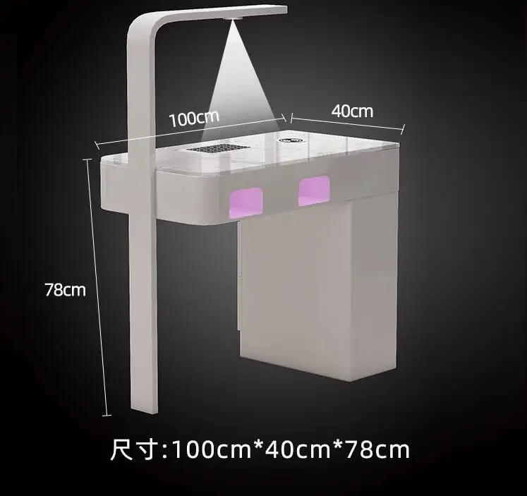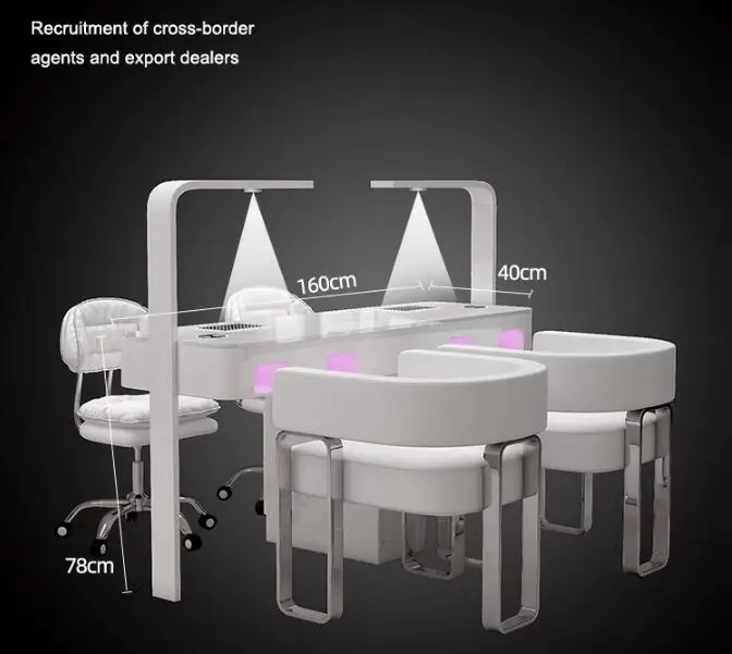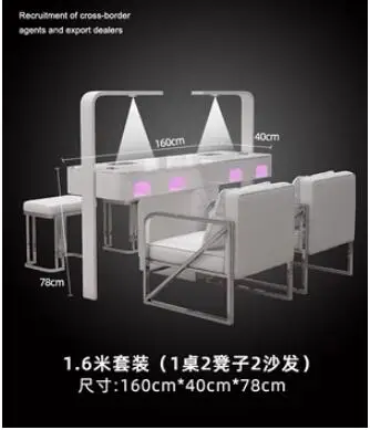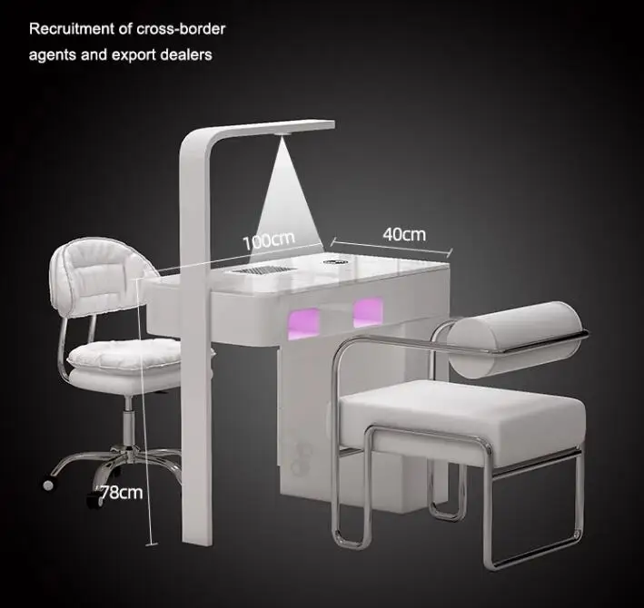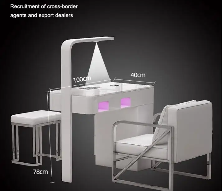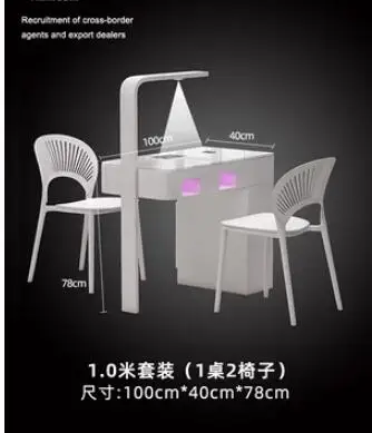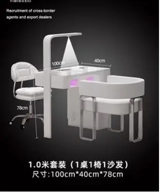 A manicure table and chair set with a second-generation vacuum cleaner and red light grill