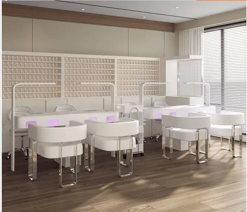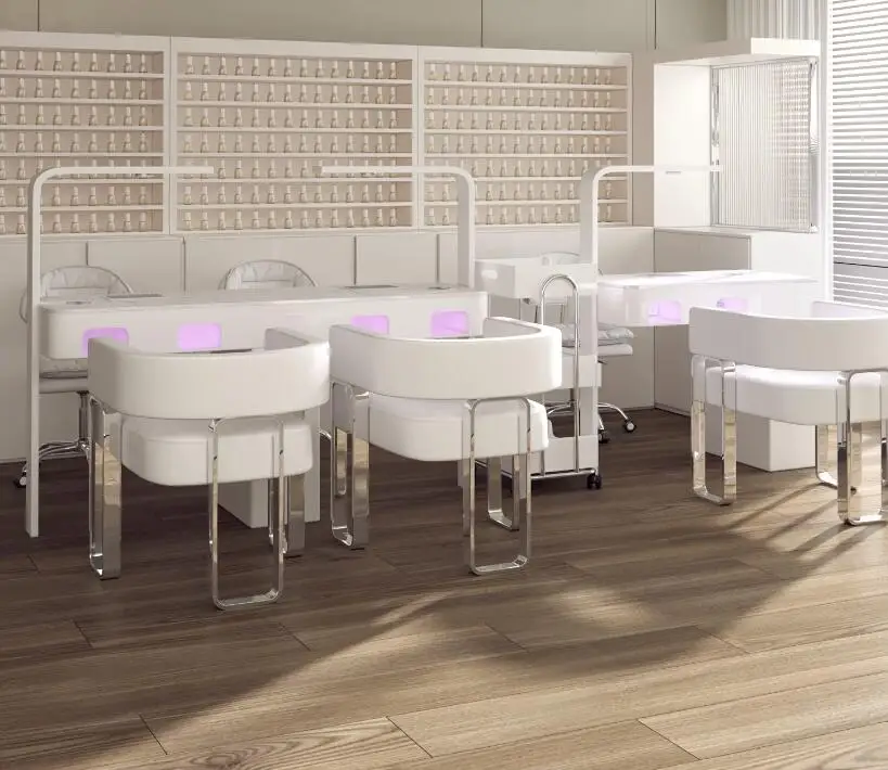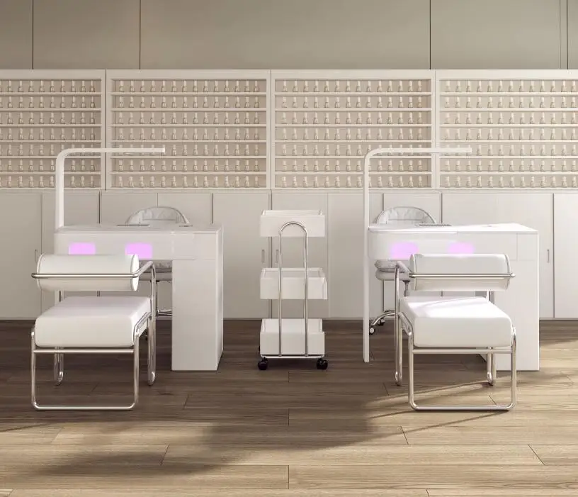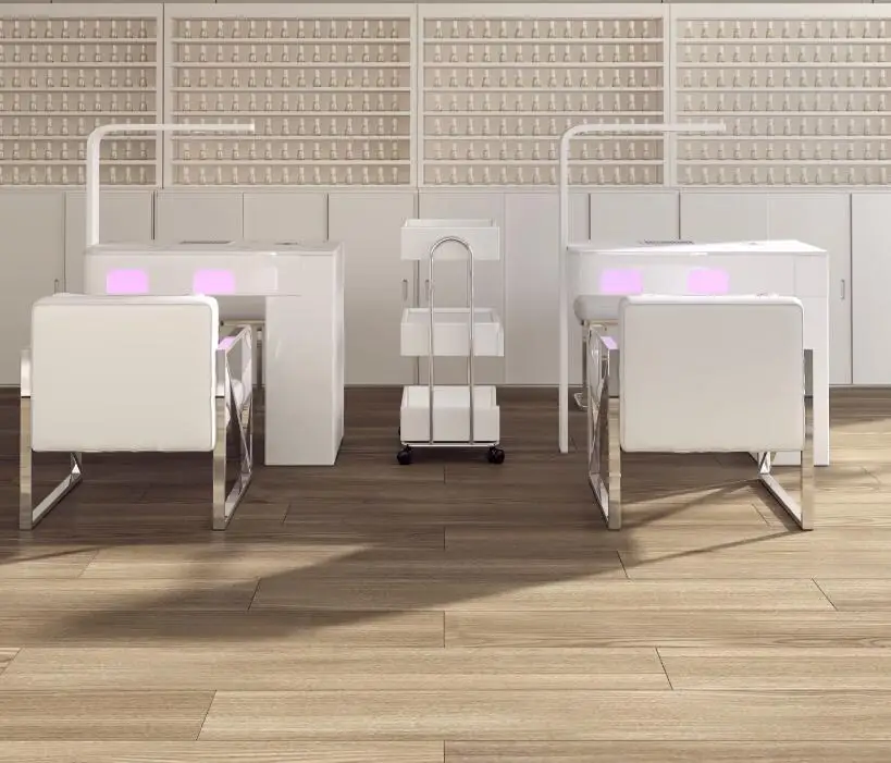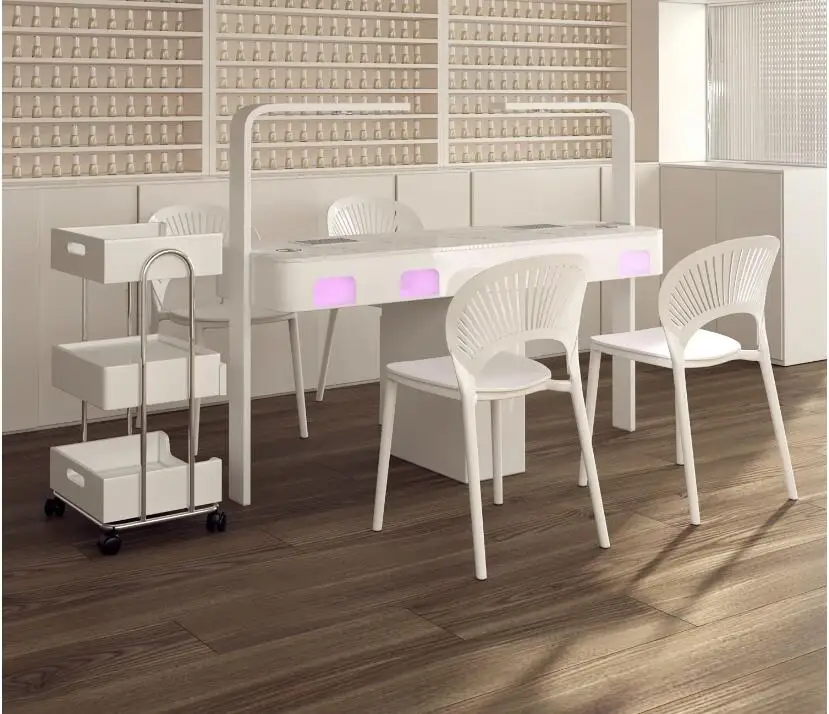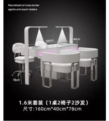 A manicure table and chair set with a second-generation vacuum cleaner and red light grill