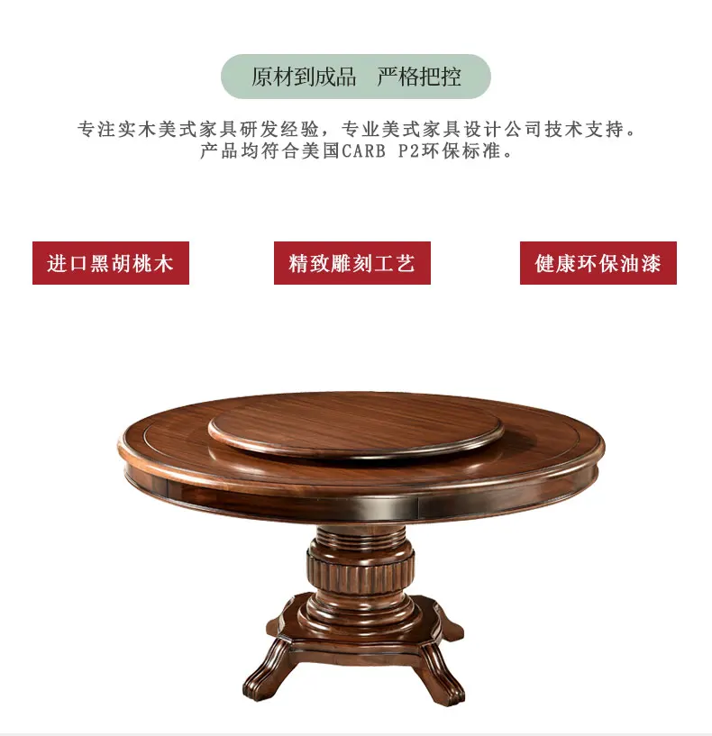 American Furniture Dining Table Black Walnut round Household