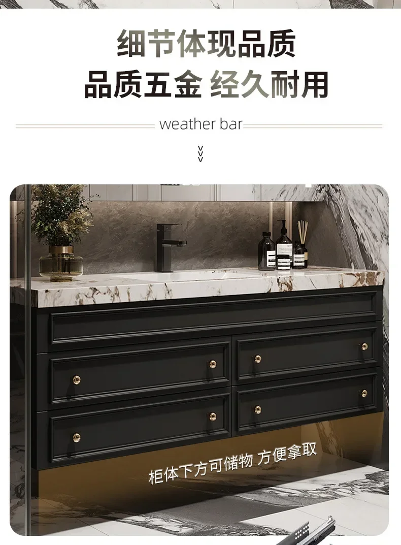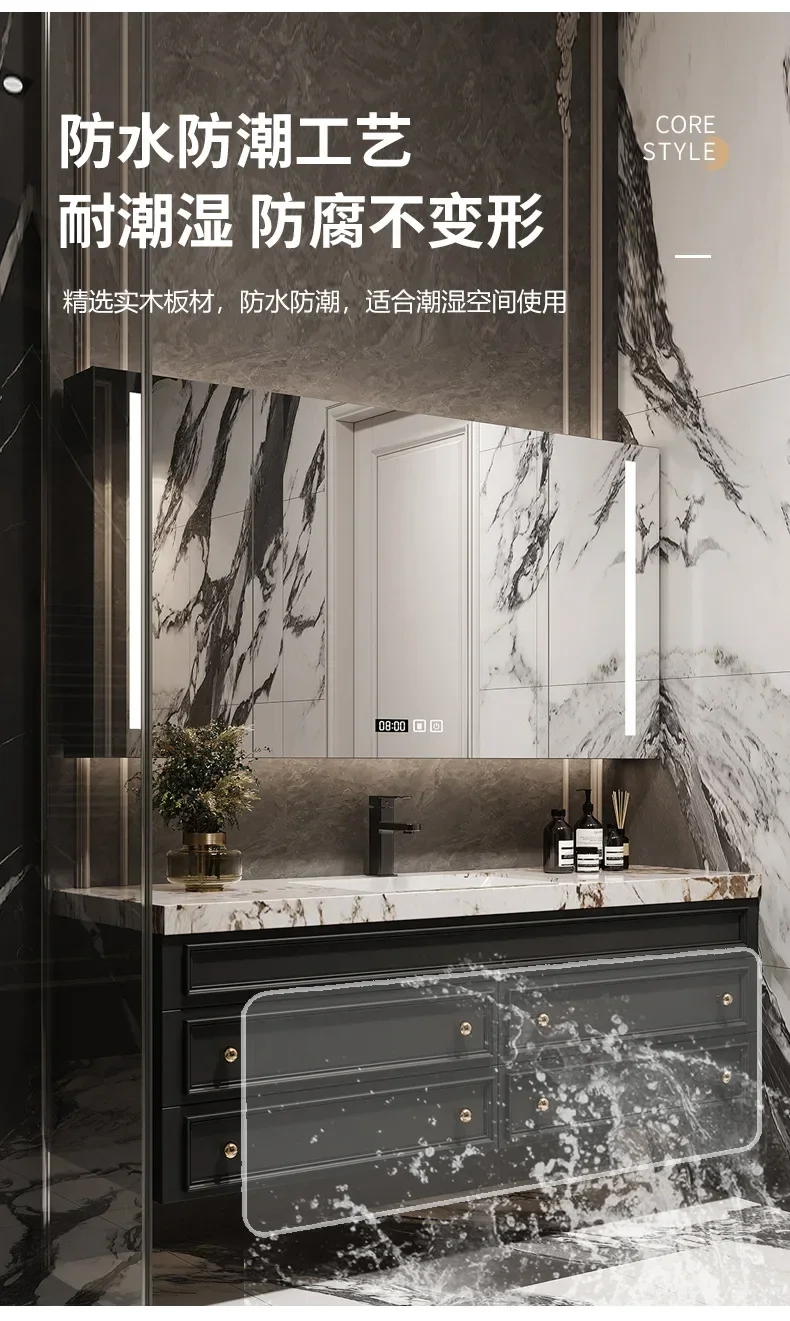 American Retro Oak Solid Wood Bathroom Cabinet Rock Ceramic Washbasin Luxury Bathroom Vanity Sink Cabinet Bathroom Furniture
