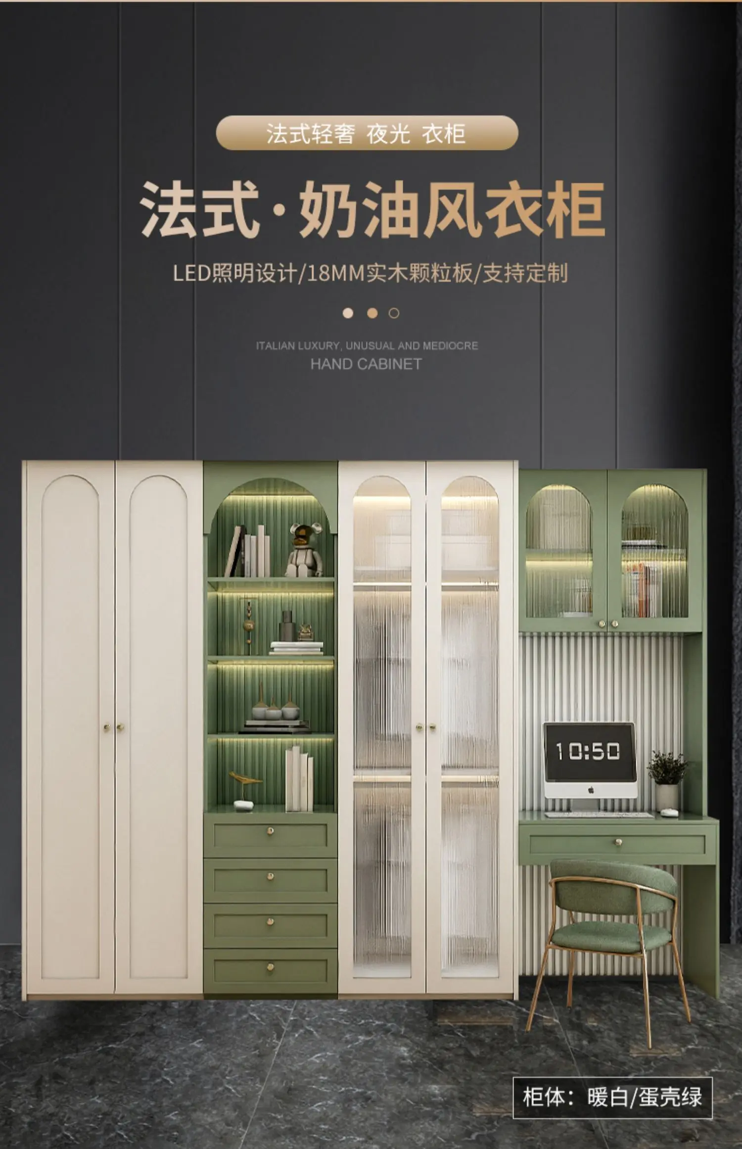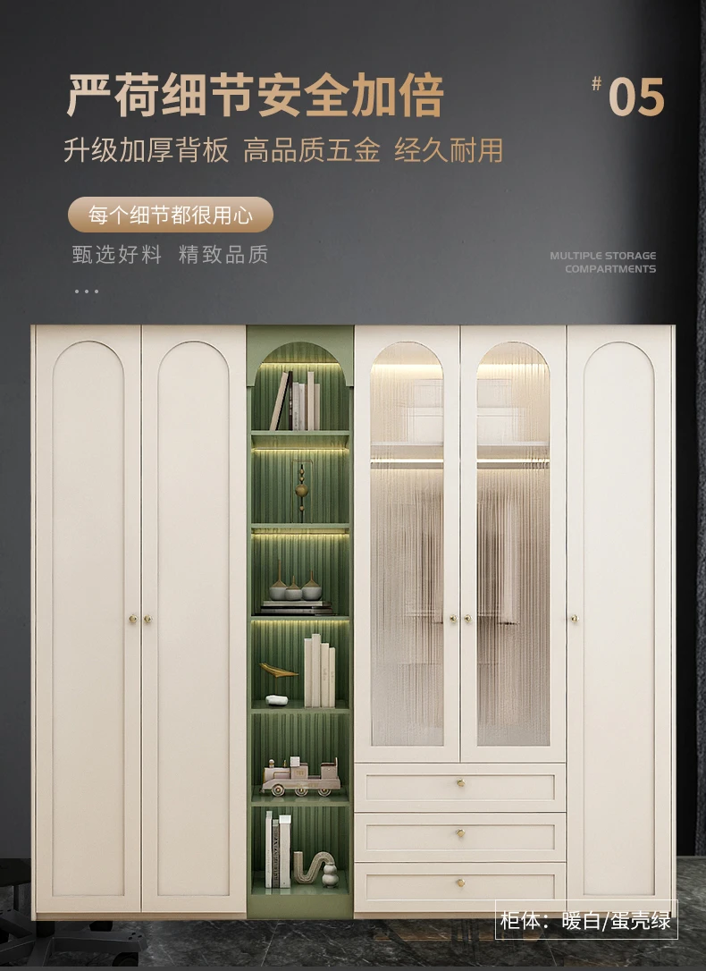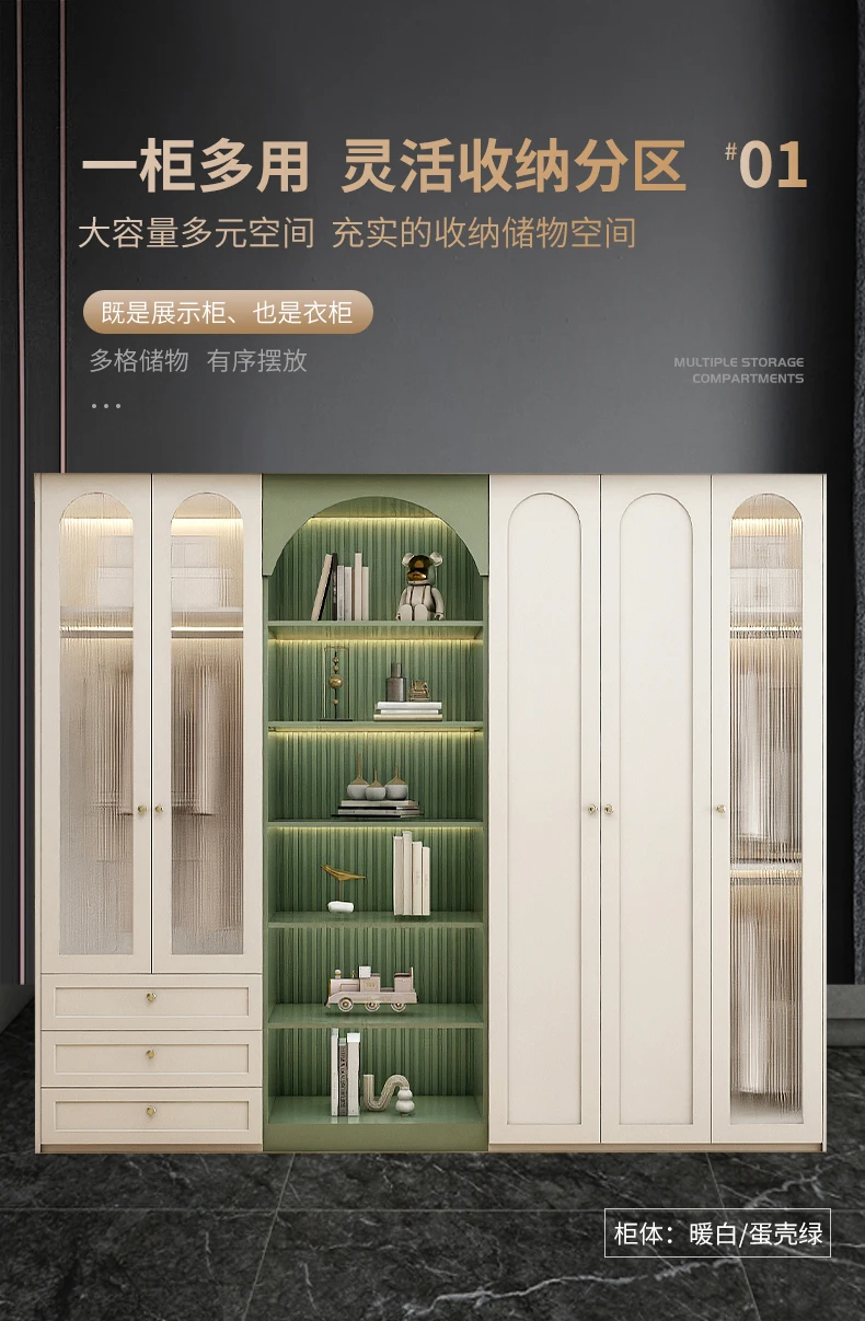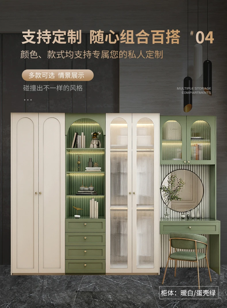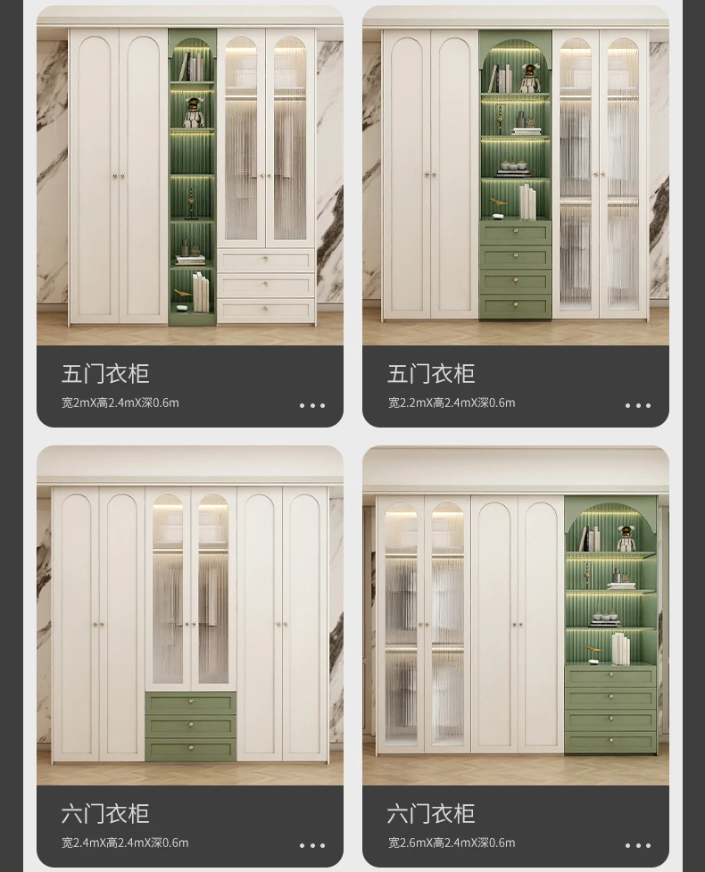 American solid wood wardrobe dresser one home bedroom light luxury French glass door overall wardrobe