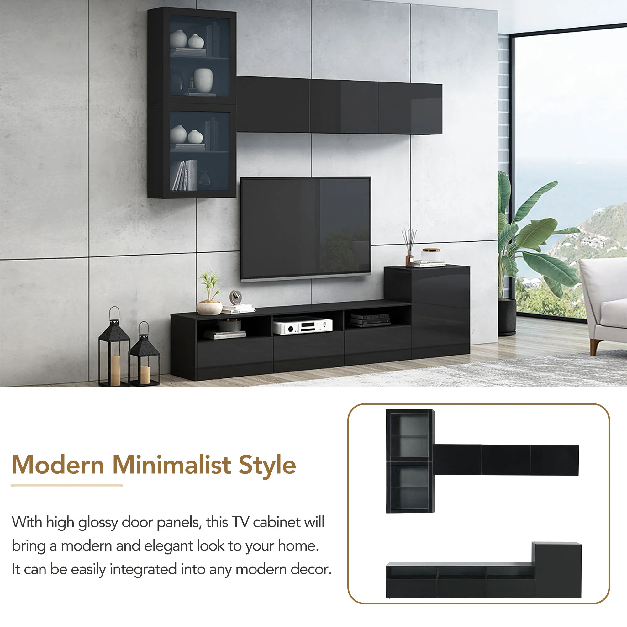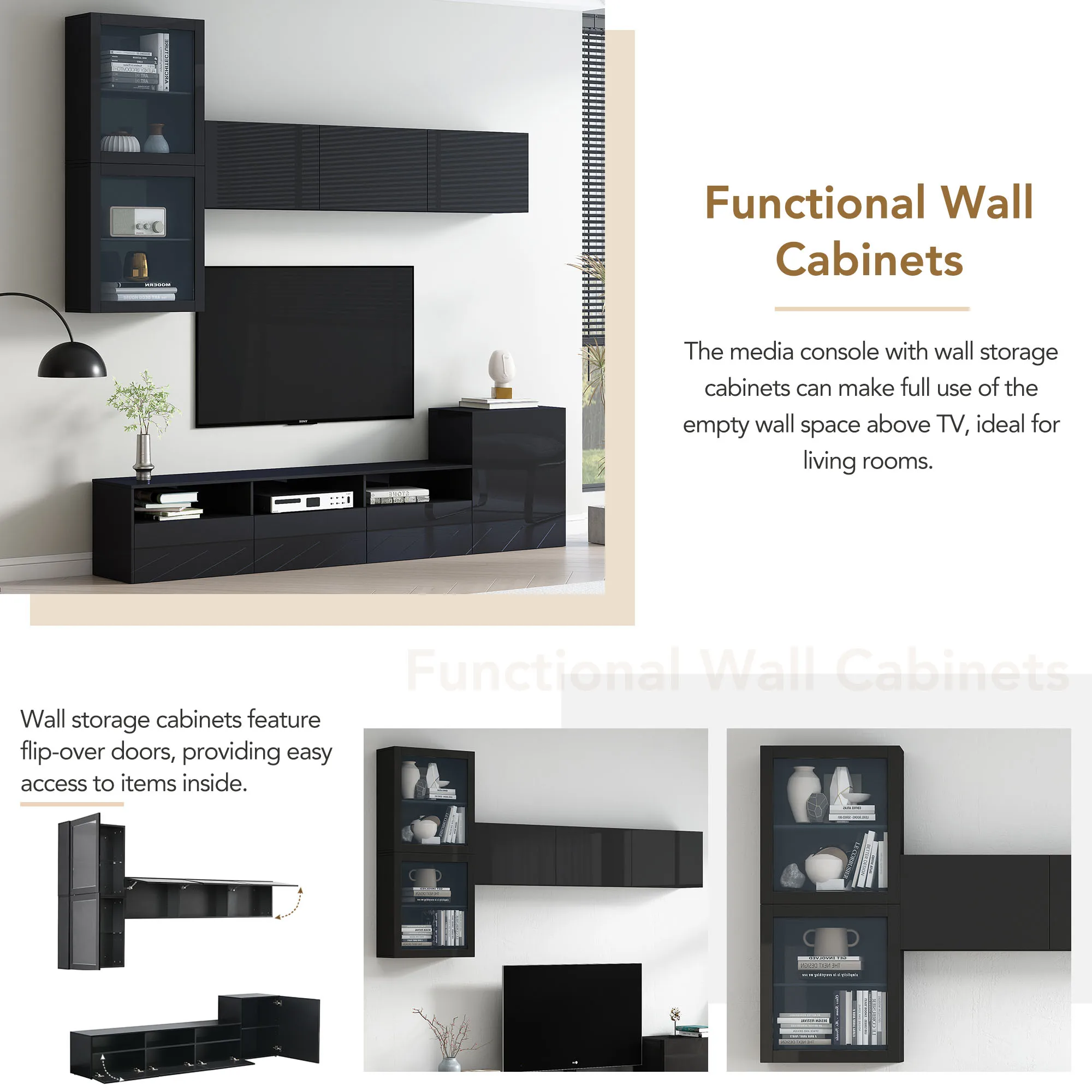 Ample Storage Space TV Stand for TVs Up to 75" , Entertainment Center with Wall Mounted Floating Storage Cabinets