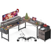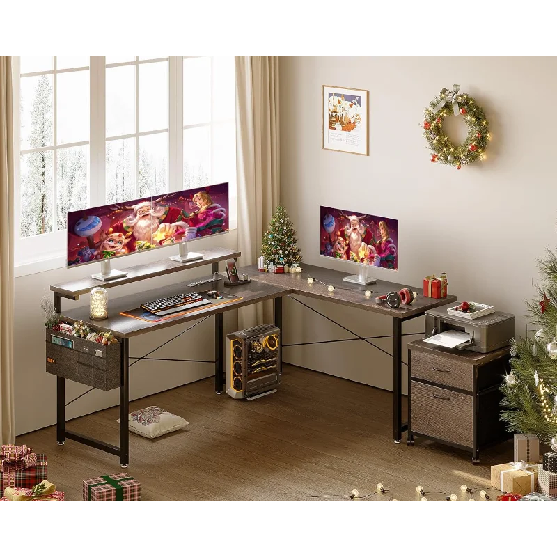 - 【HOME OFFICE FURNITURE】This large L shaped desk offers a spacious 55" X 47" x 36"(L*W*H) table top, enough for 2 monitors, laptop and other office stuff, works great as business furniture or home office workstation. Two tier desktop design provides enough working and writing space, there also have space for your printer in top of file cabinet.