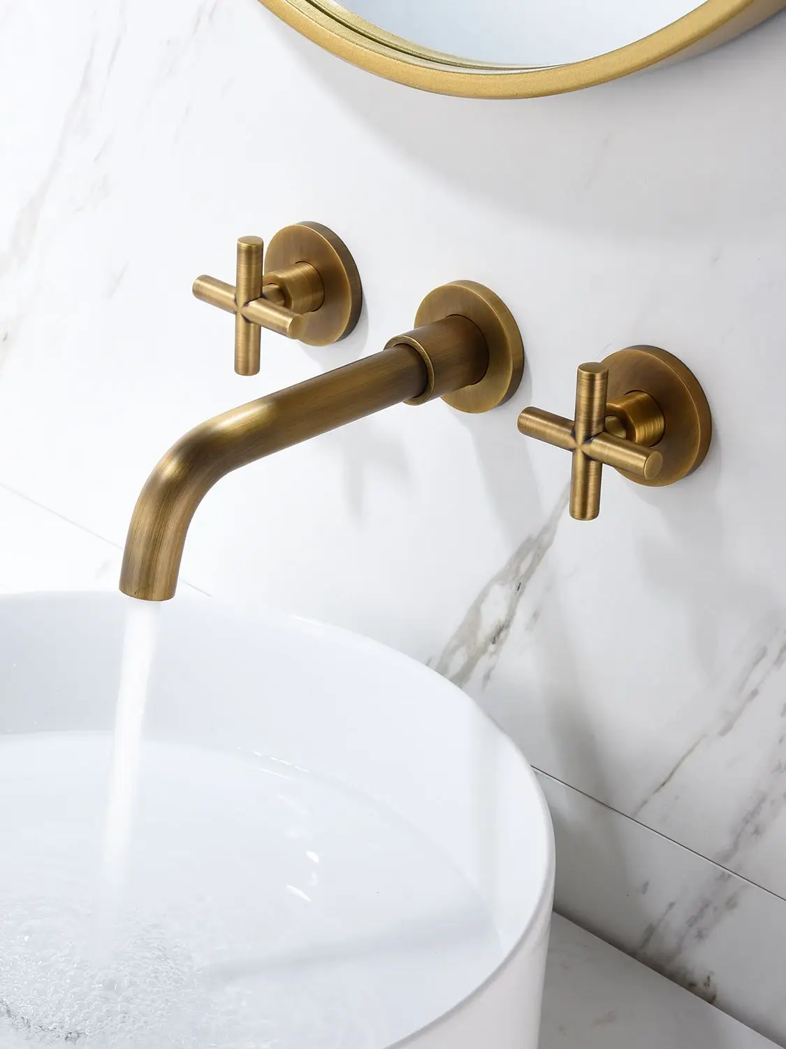 Basin Faucet Bath Mixer Bathroom Sink Tap Wall Mount Bronze With