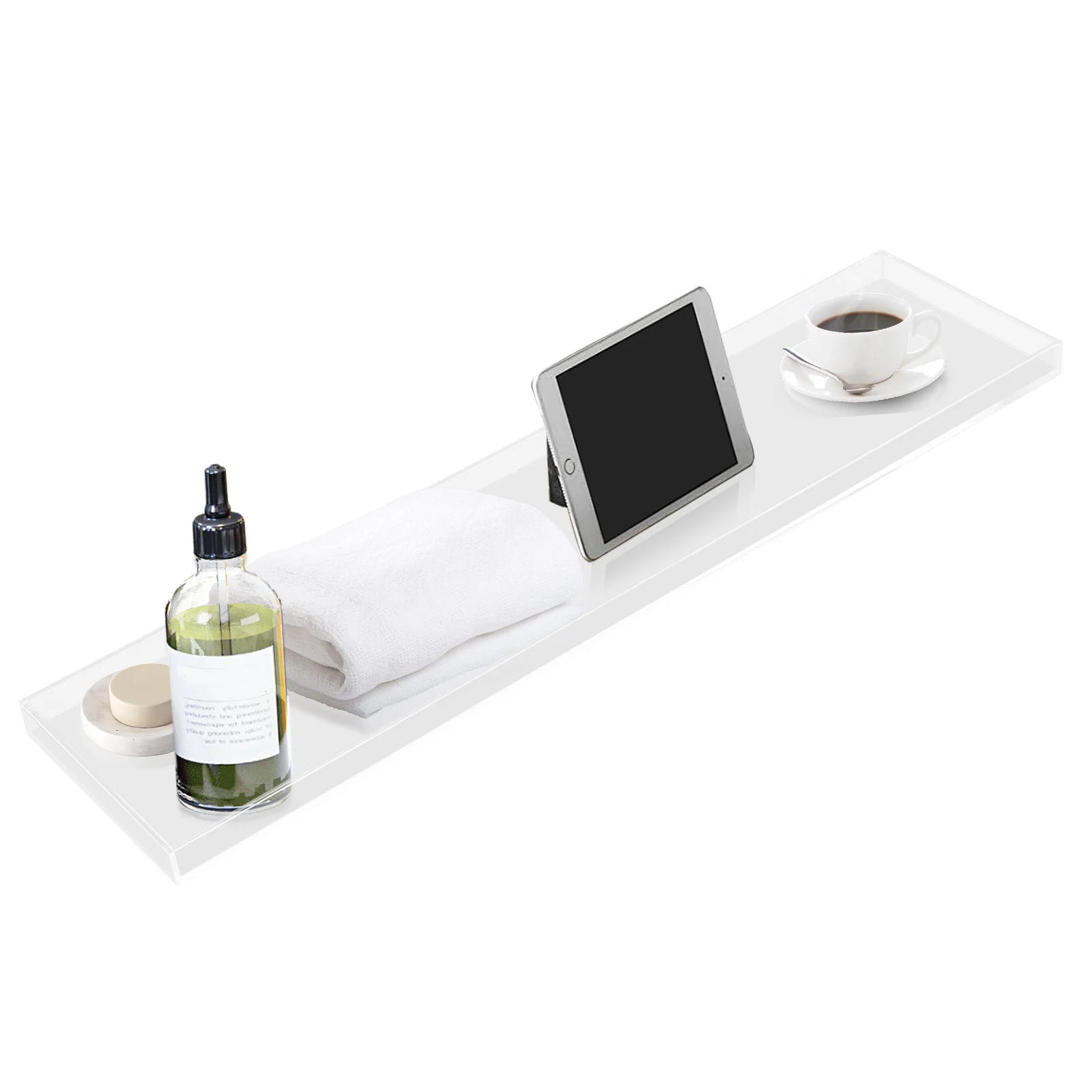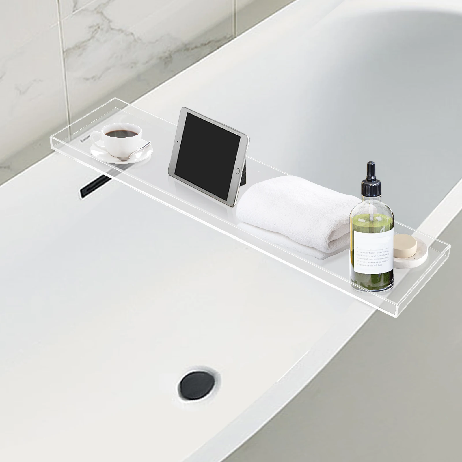 Bathtub Tray Caddy Acrylic Bath Tray Wine Glass Book Holder Bath Tub Table Caddy for Home Bathrooms Organizer Shelf