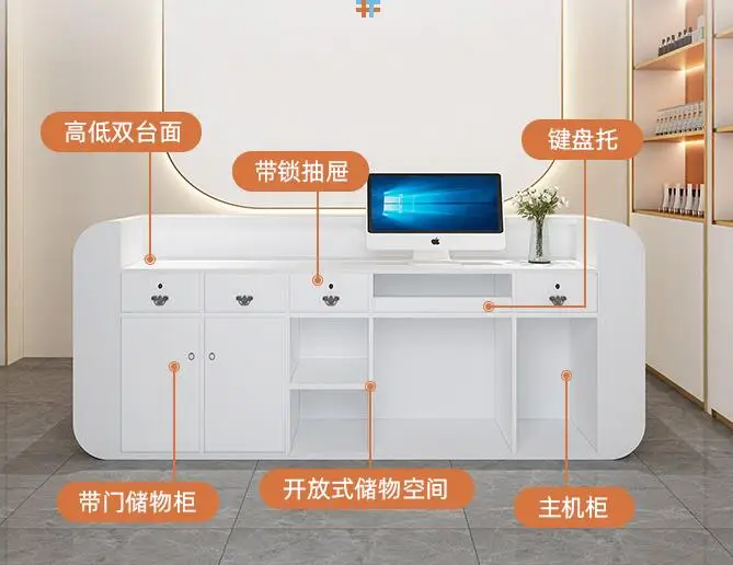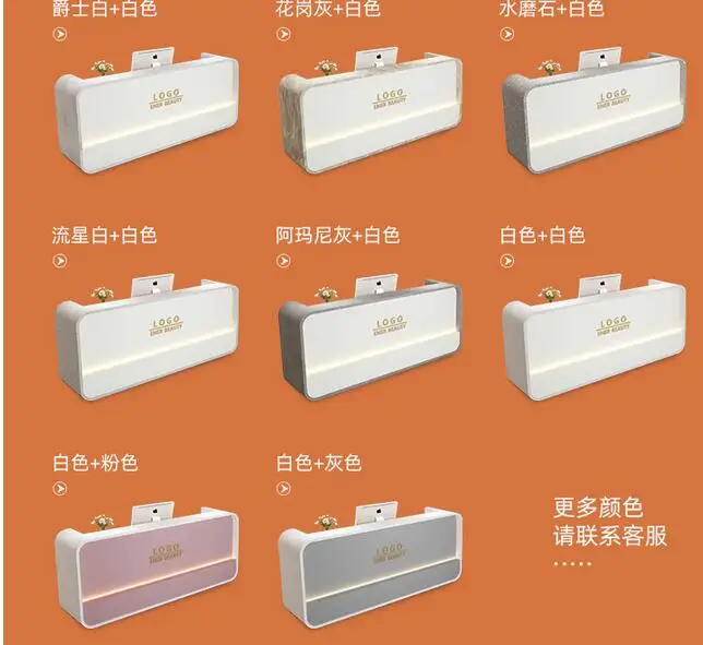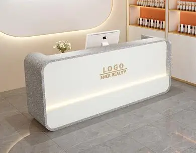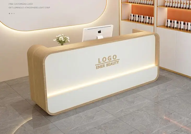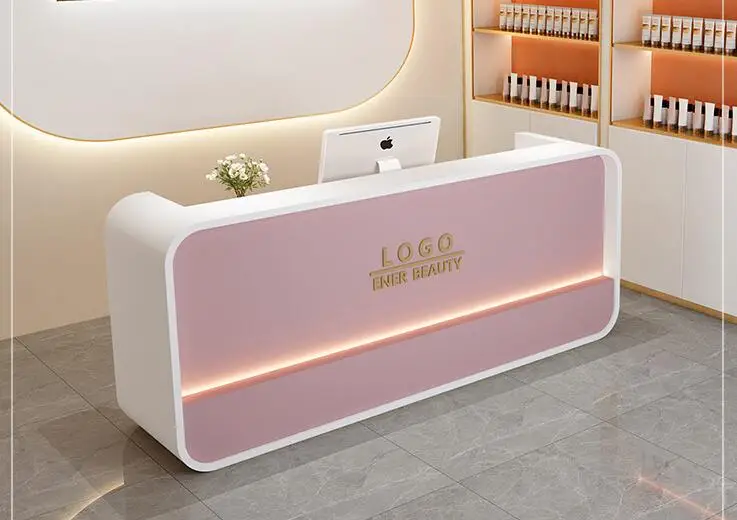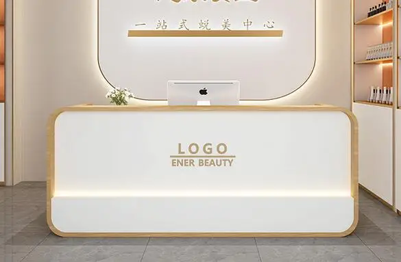 Beauty salon paint bar women's clothing store arc cashier simple modern small company front desk reception counter