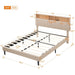 Bedroom furniture: modern upholstered platform bed with storage headboard and USB port, full, grey