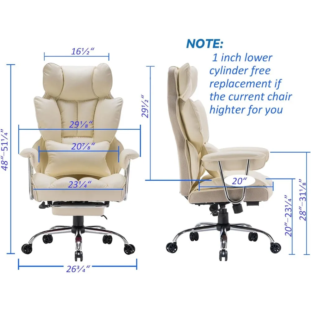 Big High Back PU Leather Executive Office Chair With Leg Rest Computer Gaming Chair on Wheels Lumbar Support and Swivel Armchair