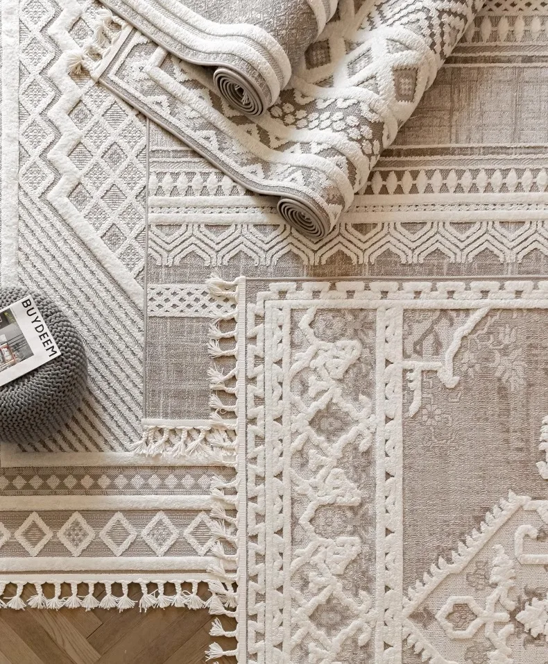 Because the volume limit is very strict, it can only be folded packed, it has the creases, but the creases are very easy to recover, spread it under the coffee table for a while, walk around, and also use heavy things press on it, the carpet will be flat