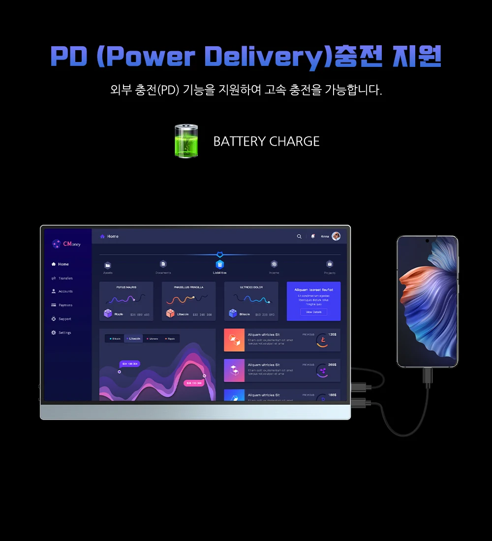 ○ 18.5 "The portable monitor does not have a built-in battery and does not have a touch screen function, so charging is not possible. It is. Unable to touch, connect and start.