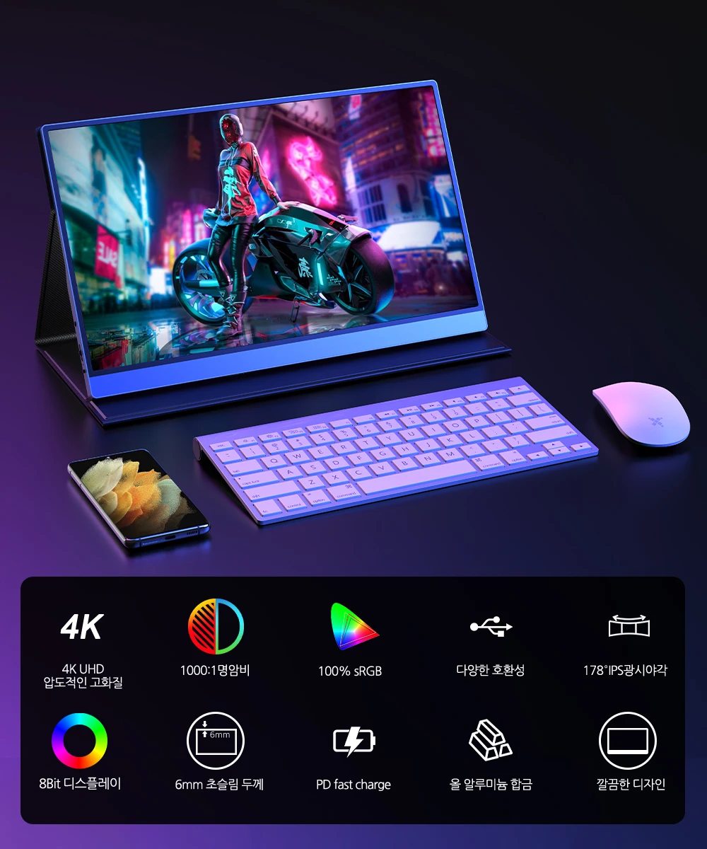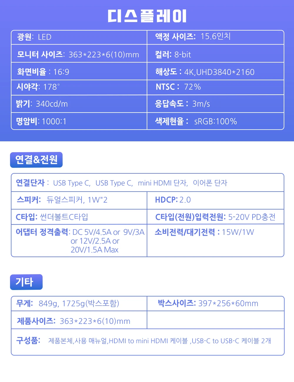 Model: Cdisplay 15.6 inch Portable Monitor 4K 3840*2160 UHD 60Hz 16:9 100% sRGB 1000:1 HDR USB C Mini HDMI External Second Monitor Portable IPS Screen Gaming Computer Display