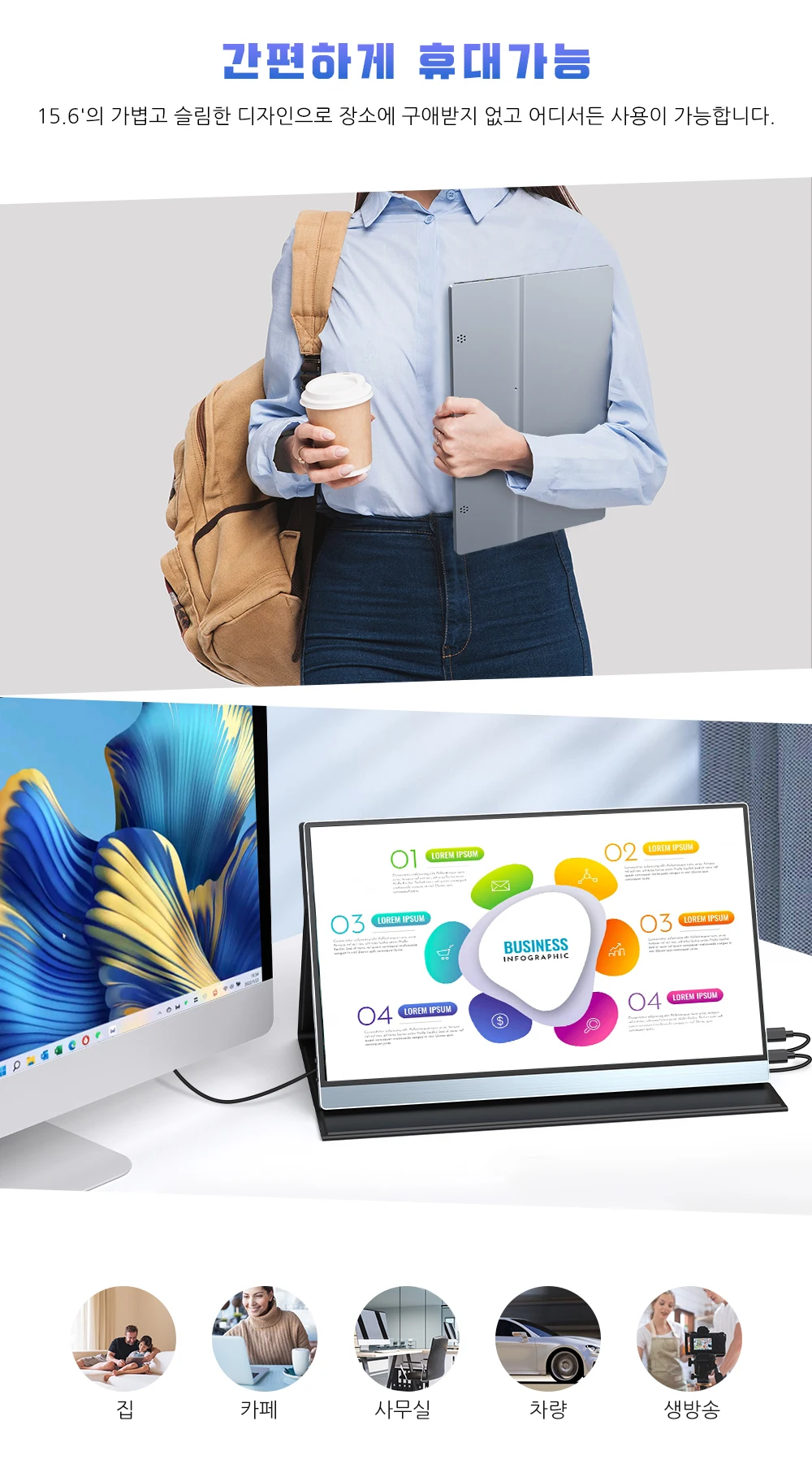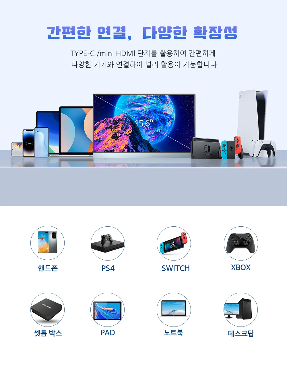 Type: Portable Monitor, Portable Computer Monitor, 15.6" Gaming Monitor, USB-C Netebook Monitor