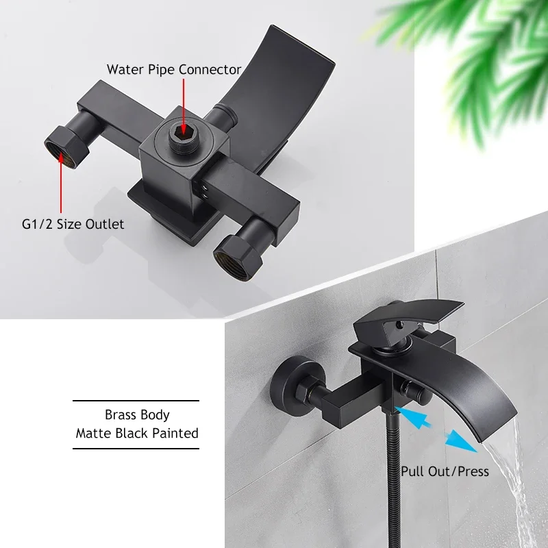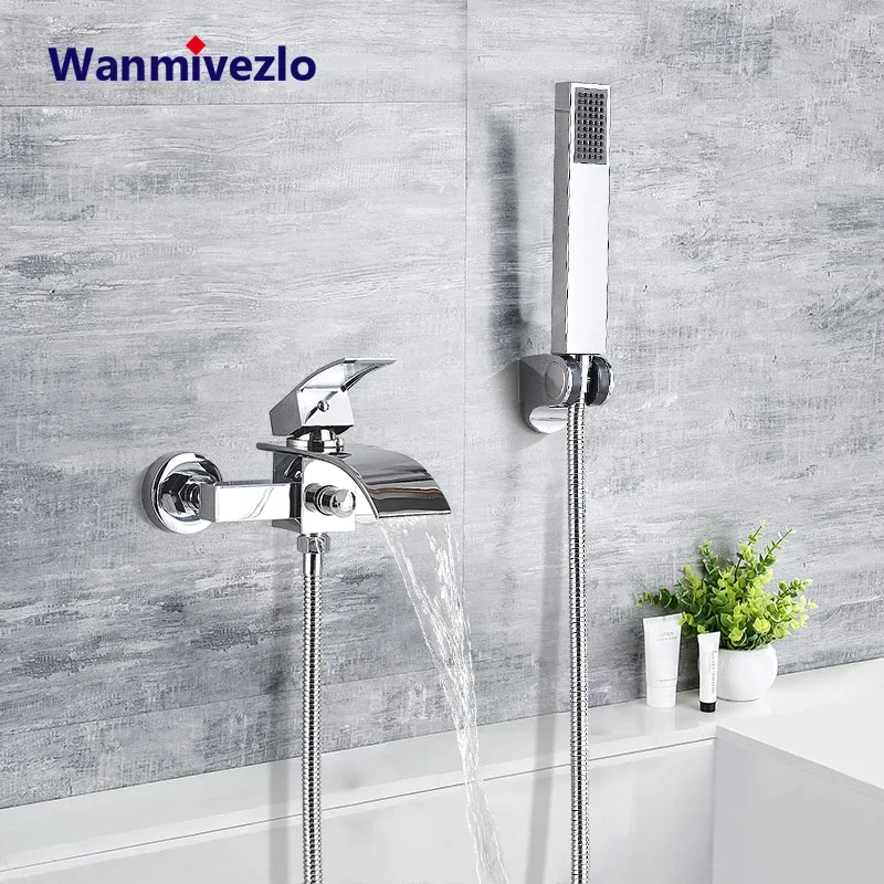 Chrome Waterfall Bathtub Faucet Wall Mounted Tub Tap Hot Cold Water Mixer Bath Shower Robinet Baignoire