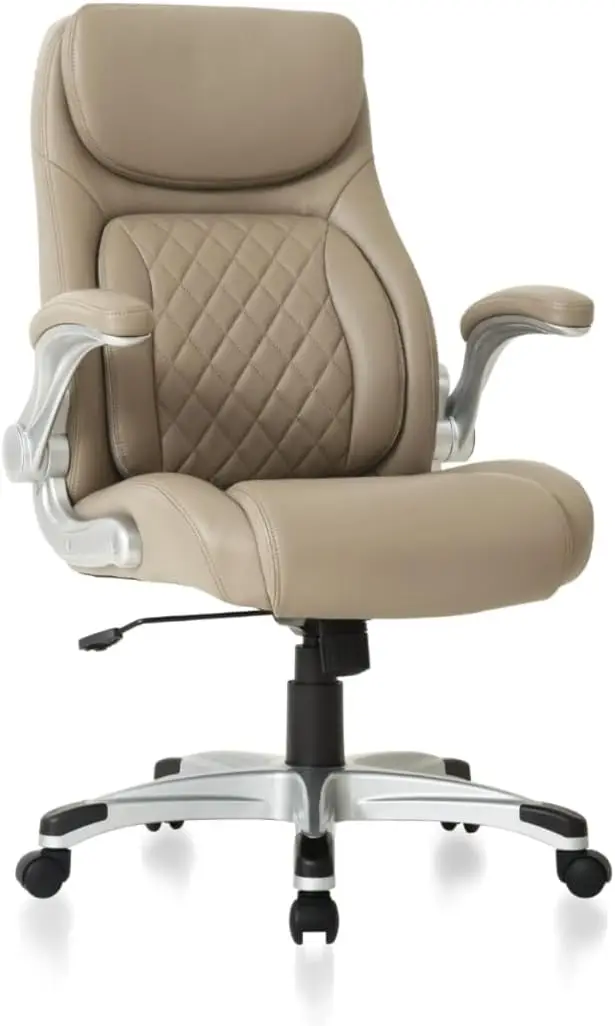 Click5 Lumbar Support with FlipAdjust Armrests. Modern Executive Chair and Computer Desk Chair (Taupe)