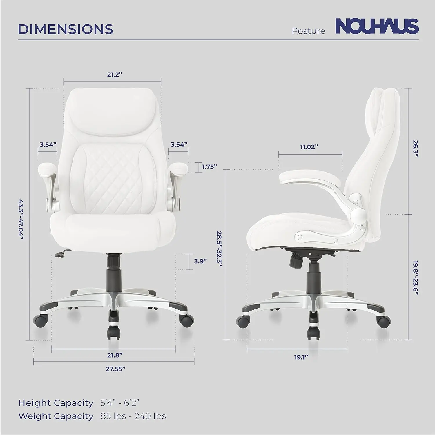 STRONG ON LOOKS: This PU Leather Chair has a Heavy Duty Nylon Wheelbase, reinforced with ribs and gussets. The smooth Class-4 Gas Lift gives a seat-to-floor range of 18.7 – 22.4 inches. You have max hip space of 19.3in. and max capacity of 240lbs. Choose from Black, Taupe, or White to strengthen your décor. EASY TO ASSEMBLE: The +Posture is easy to put together and comes with tools and instructions and weighs a strong 40.8lbs. A comfortable chair that looks right, feels right and moves right so you can "Right Size Your Workspace"