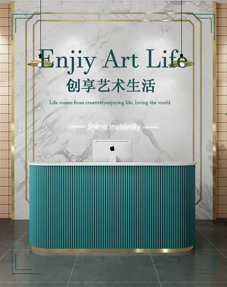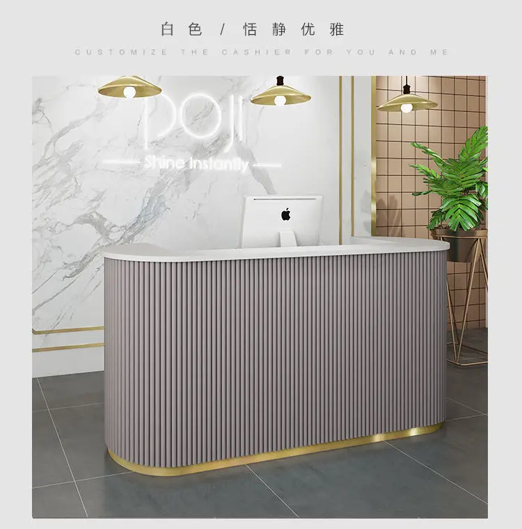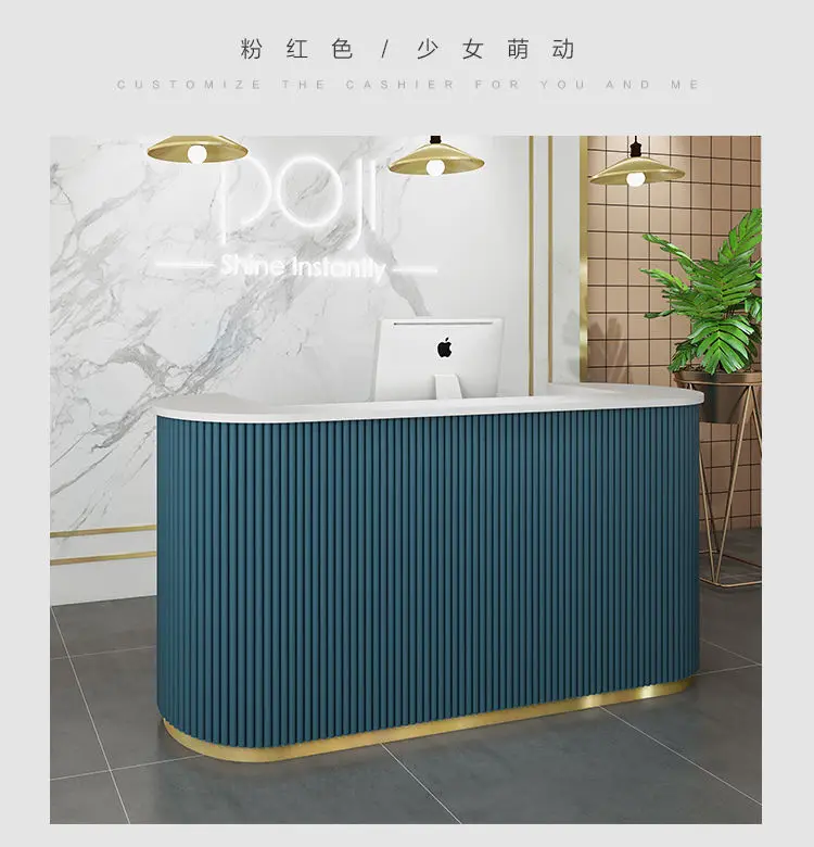 Clothing store curved cash register beauty salon bar counter Nordic light luxury macarons reception desk studio front desklucite