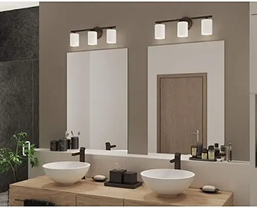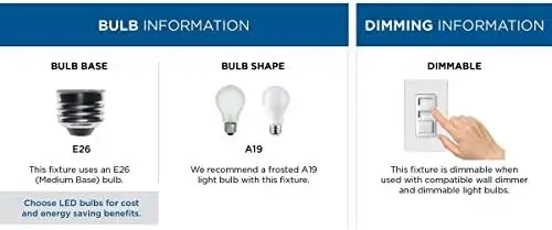 DIMENSIONS AND BULBS: Measures 22-inch by 7.875-inch by 6-inch depth (extends from ). For ideal illumination, use 3 medium base bulbs that are sold separately (100w max - LED/CFL/incandescent). Compatible with dimmable bulbs.