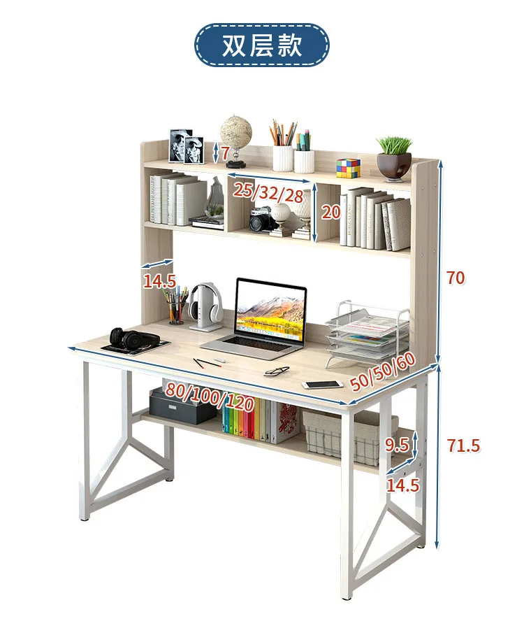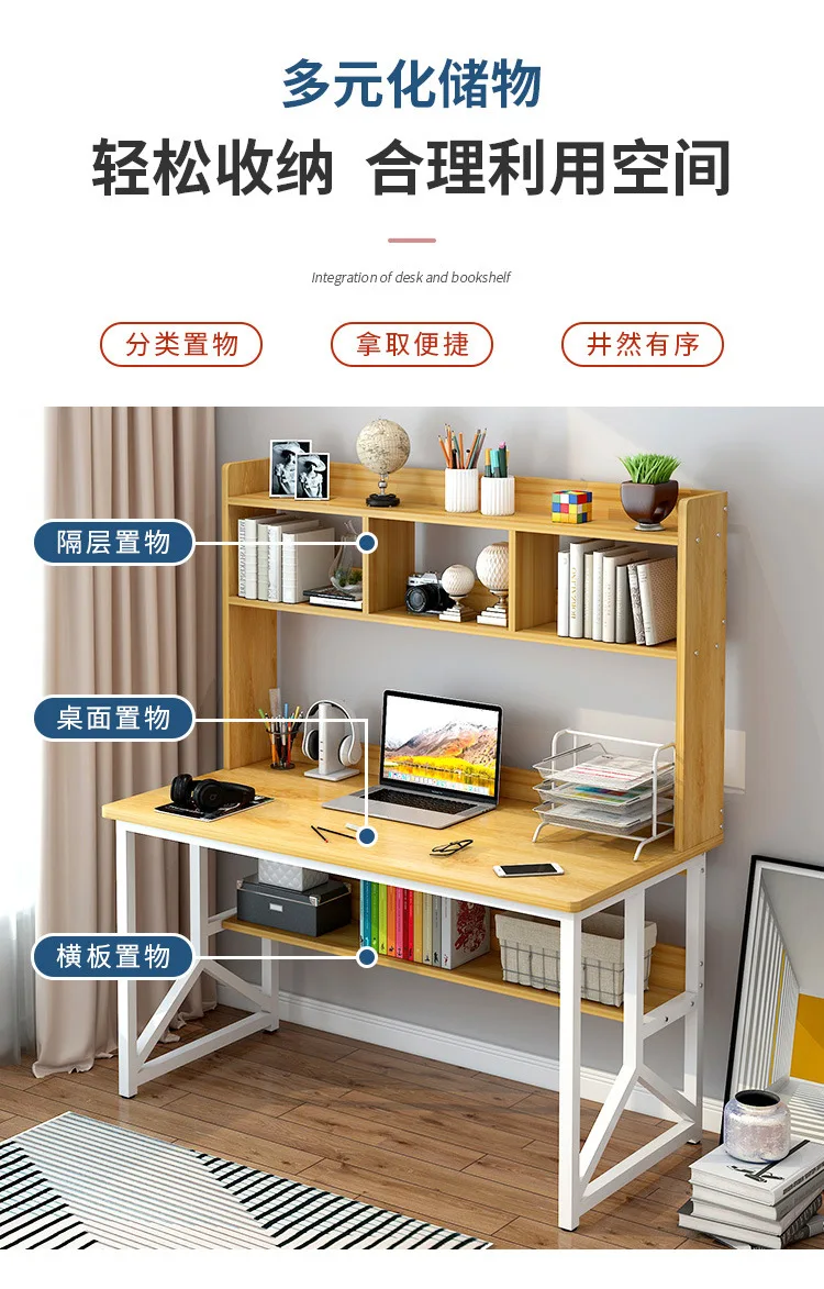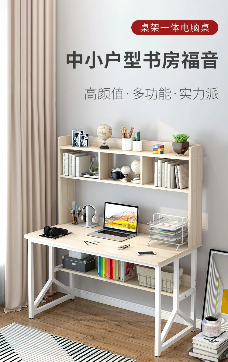 Computer Desktop Desk Bookshelf Combination Household Simple Bedroom Junior High School Student Rental Room Office Writing Desk