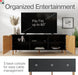 - Quality Design - The 70-inch long entertainment stand supports TVs up to 80 inches and features sleek lines on the outside of the doors with clean half-moon handles for easy opening