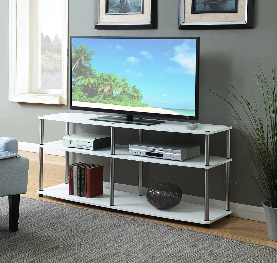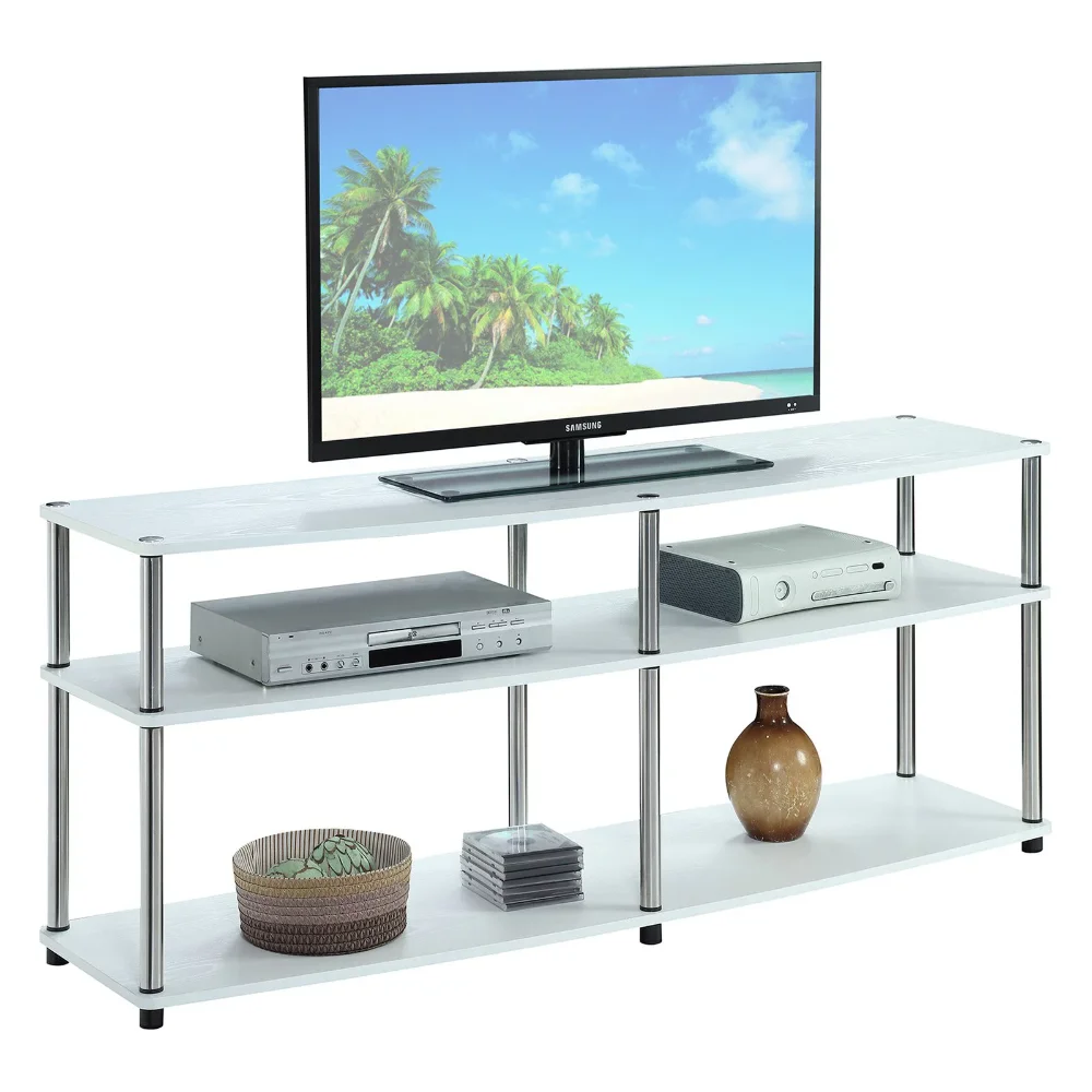Modernize your living space with the Designs2Go 3 Tier 60 inch TV Stand from Convenience Concepts. Featuring an easy to assemble construction you can set it up in minutes without the use of any tools. The open concept shelves allow plenty of space for all of your media needs with cable management. Available in multiple finishes this TV Stand will be sure to complete the look of any decor.