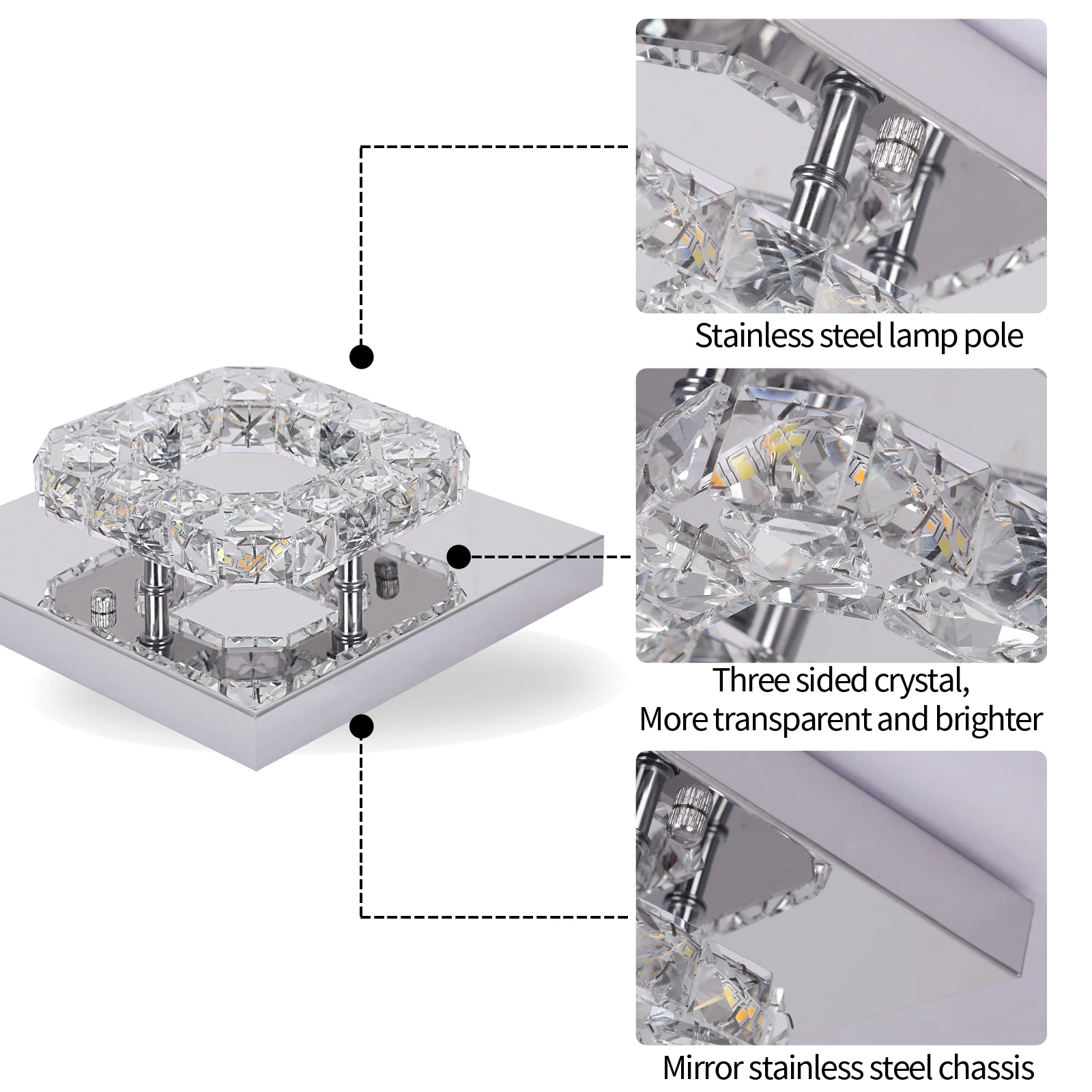 .Material: stainless steel + transparent crystal