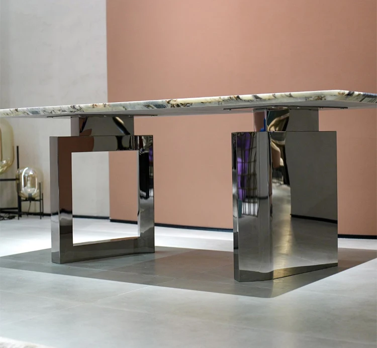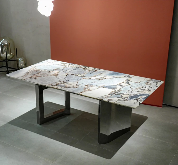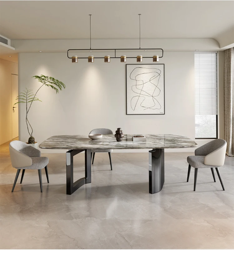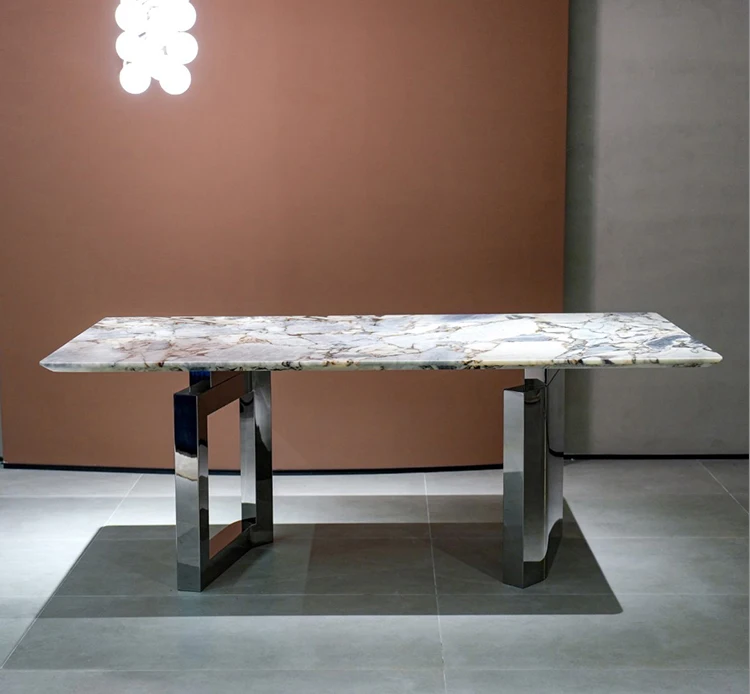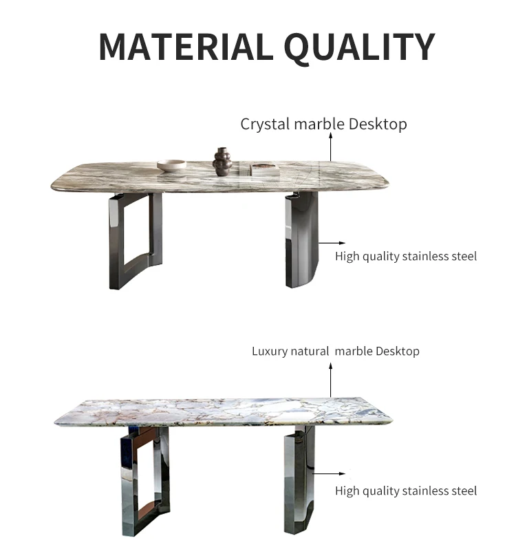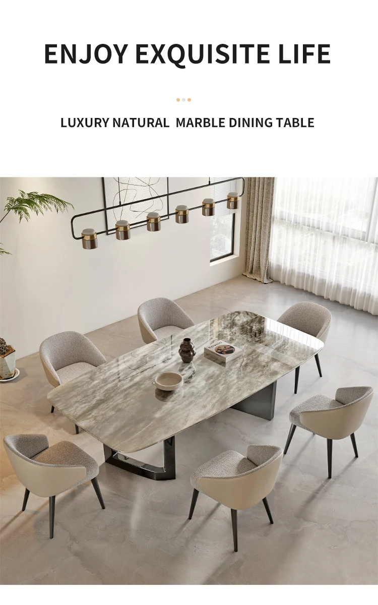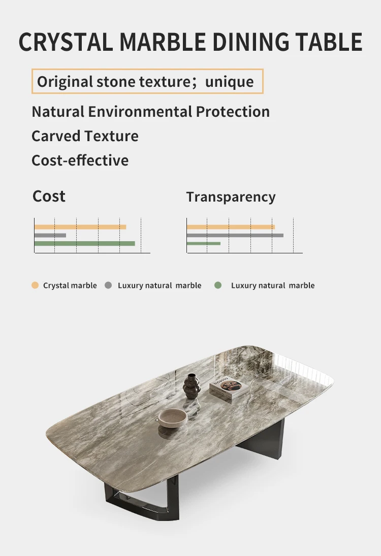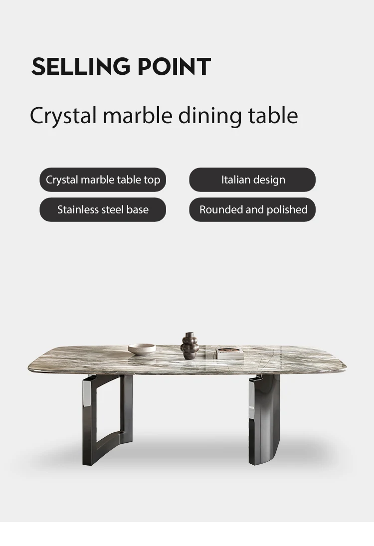 Crystal Marble Stone Dining Table High-End Rectangle Minimalist Villa Marble Restaurant Dining Table Home Furniture