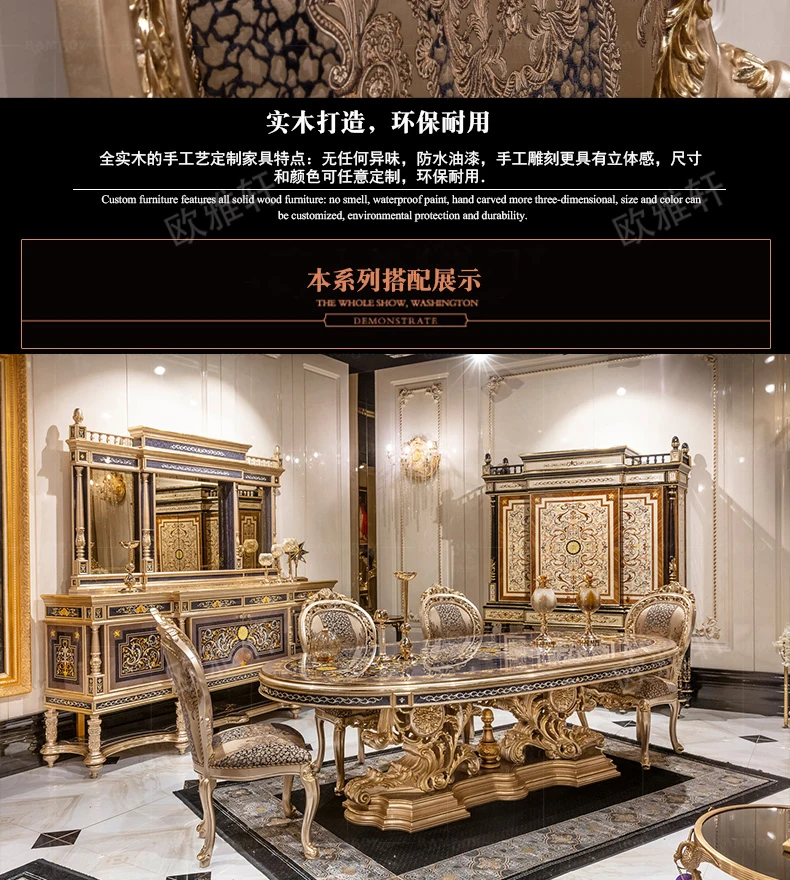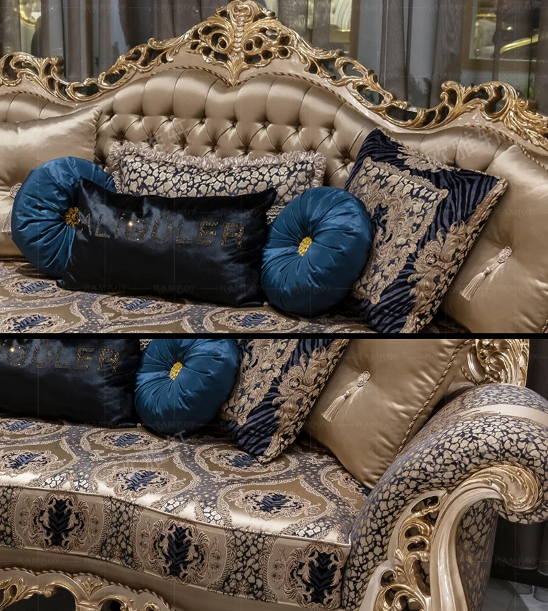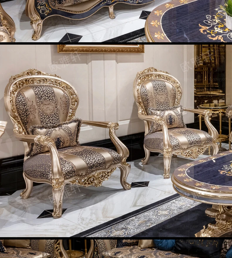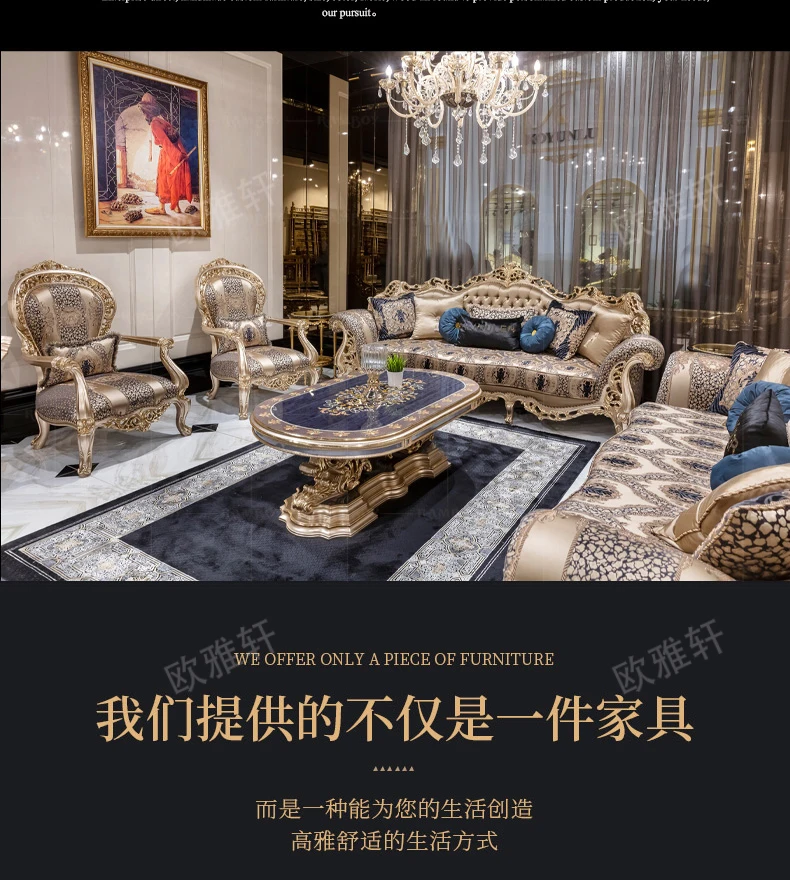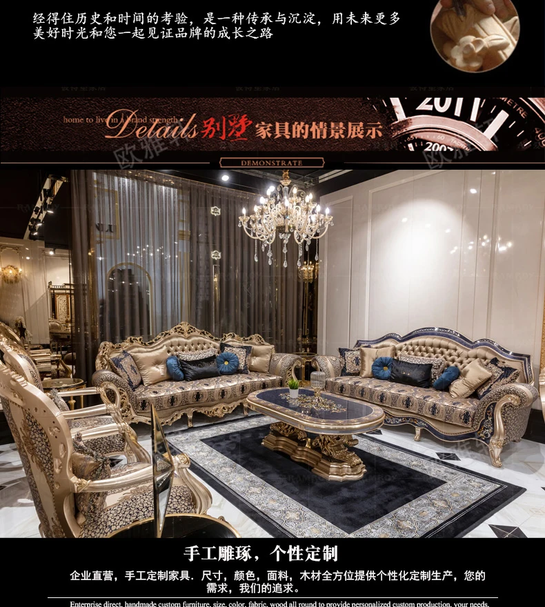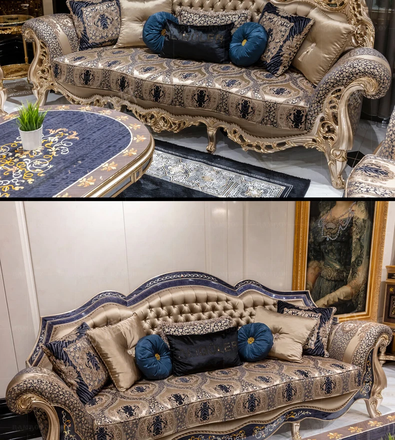 Custom French palace fabric sofa European living room solid wood carved luxury sofa combination