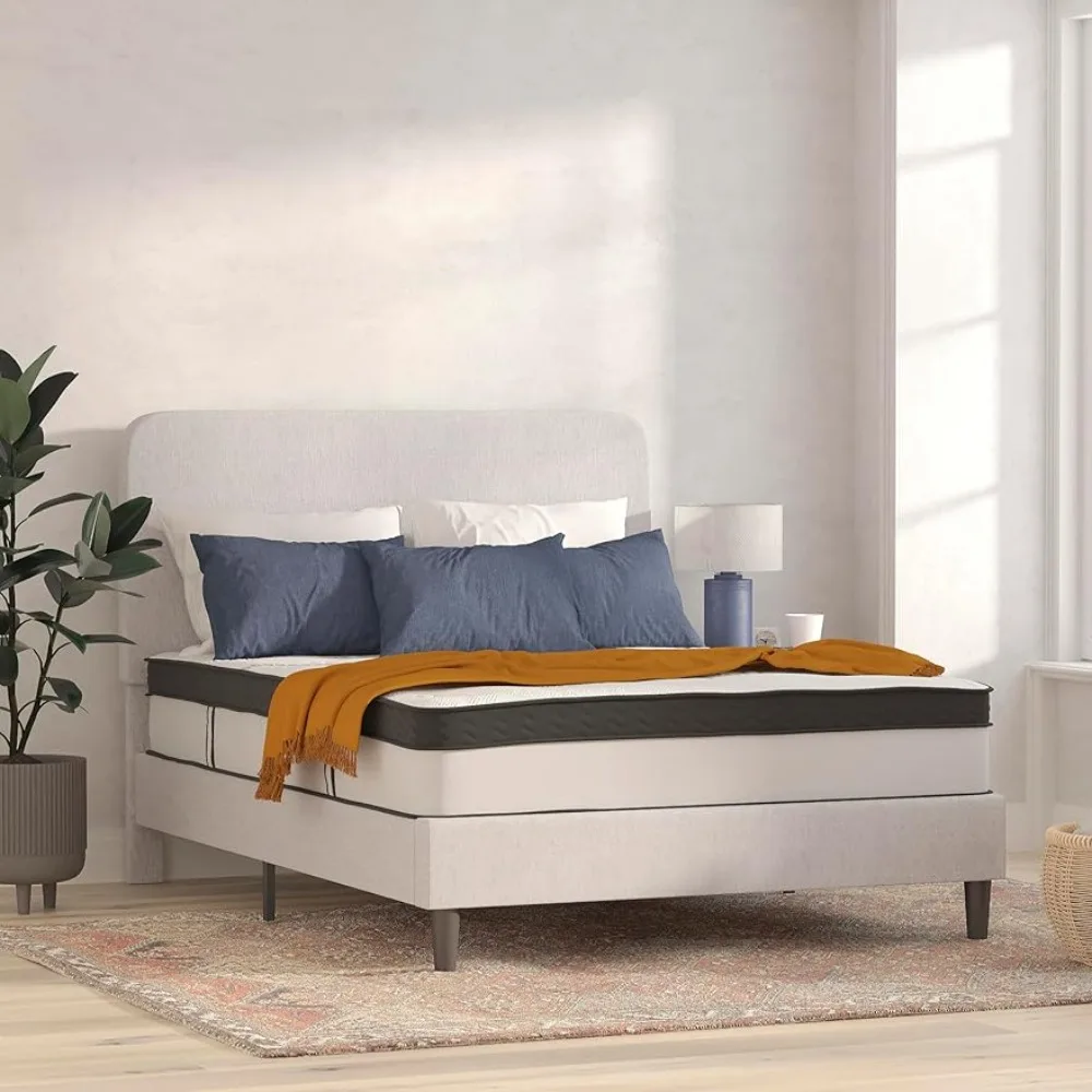 - SLEEP COMFORTABLY: Get your coziest sleep atop this queen size 12 inch mattress covered with a soft knitted fabric top and filled with premium high-density foam over a pocket spring core ideal for all body types and sleep styles.