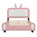 [Flash Sale]Full/Twin Size Upholstered Rabbit-Shape Princess Bed Platform Bed Frame with Headboard & Footboard White+Pink[US-W]