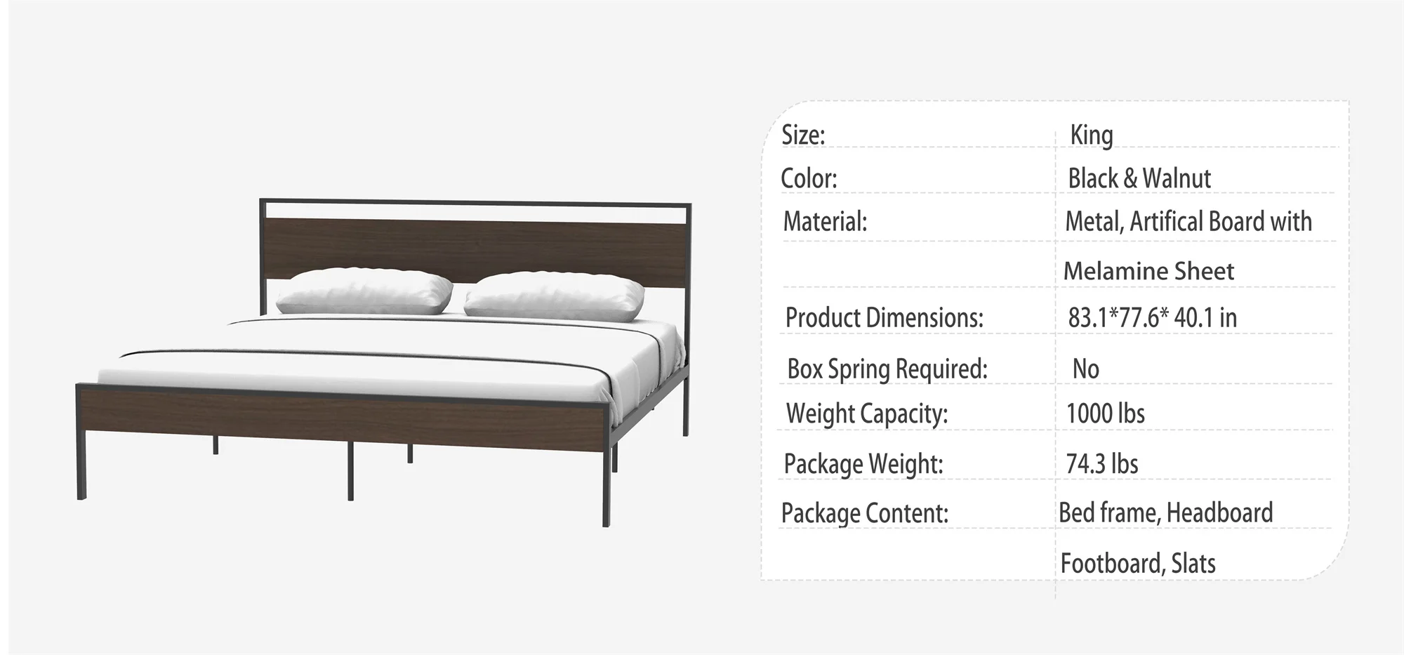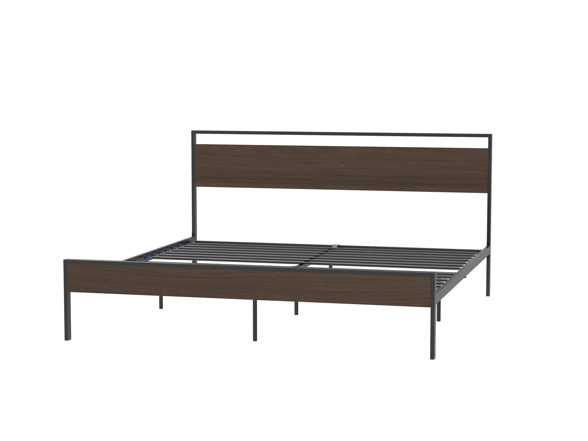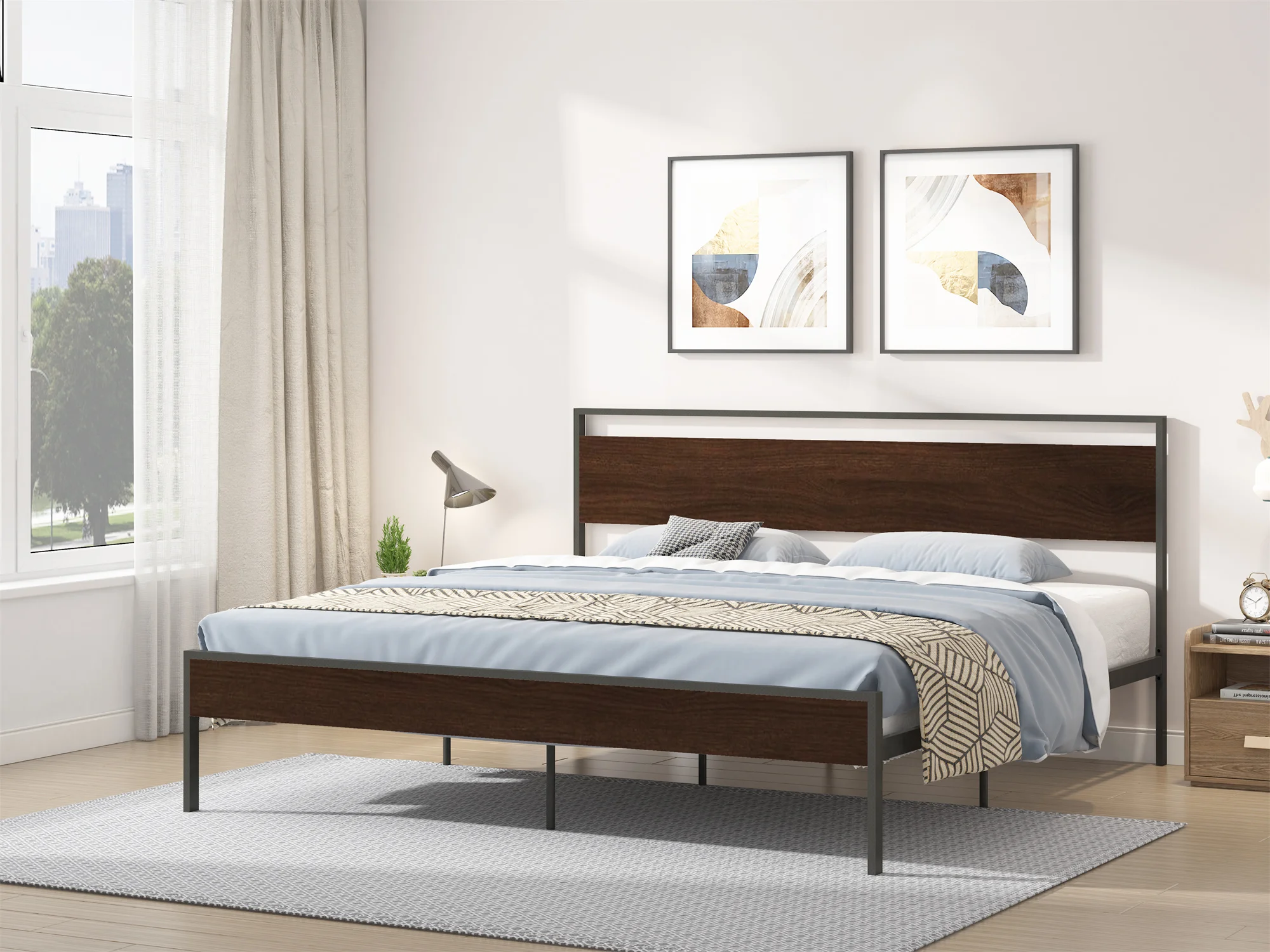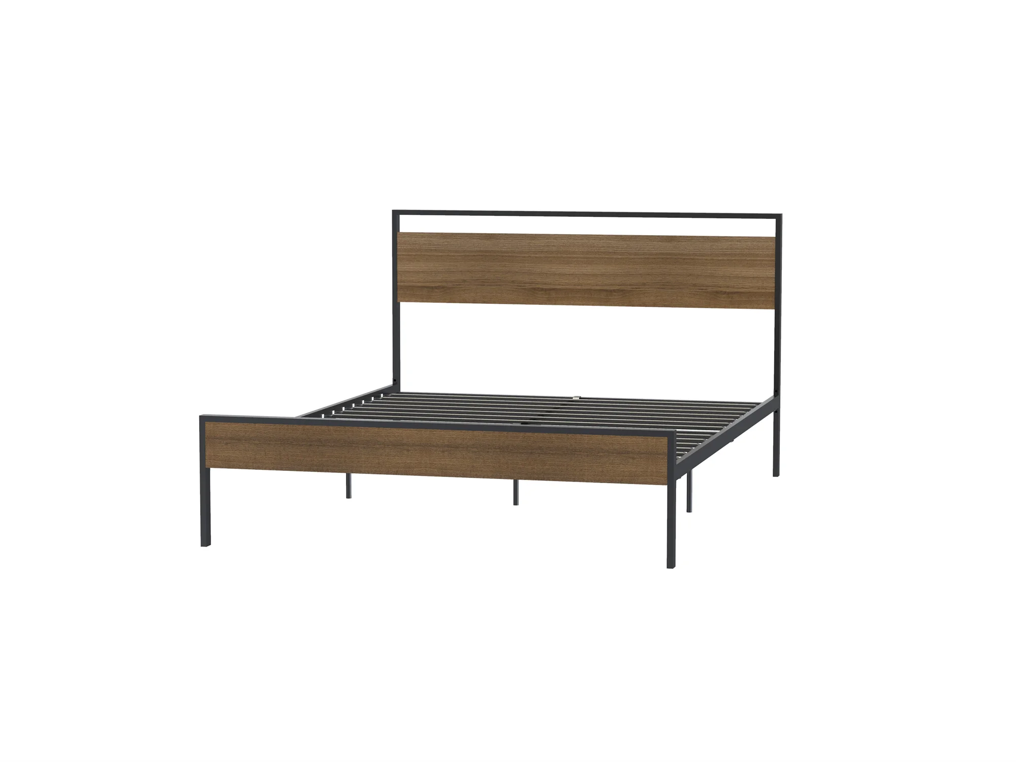 [Flash Sale]King/Queen Size Ceres Metal Bed Frame Black with Walnut/Cinnamon Wood Headboard&Footboard[US-W]