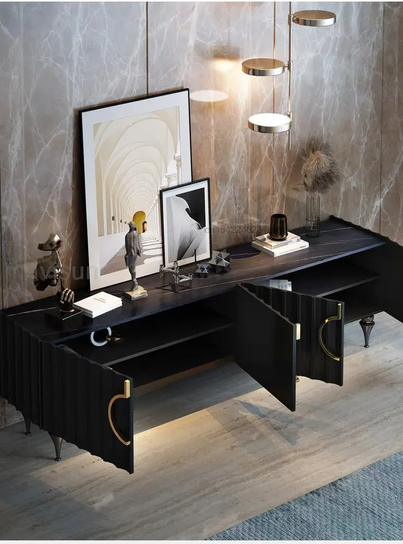 Italian High-End Light Luxury Floor Cabinet Modern Minimalist Home Living Room Furniture Large Villa New Rock Board Tv Stands