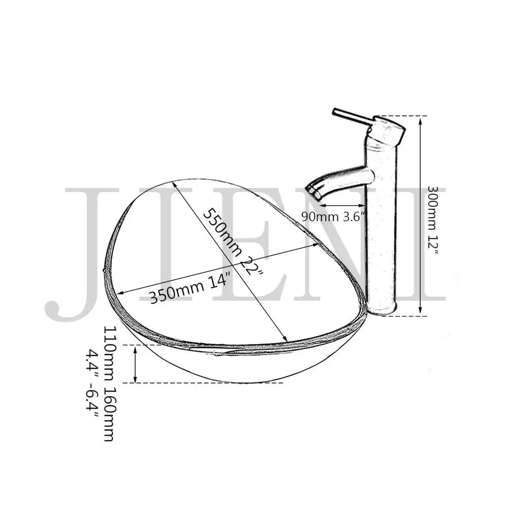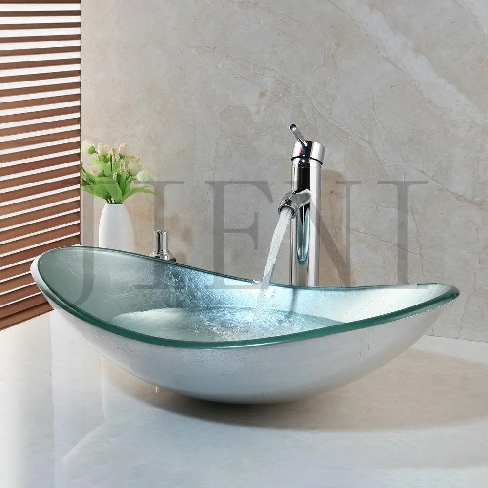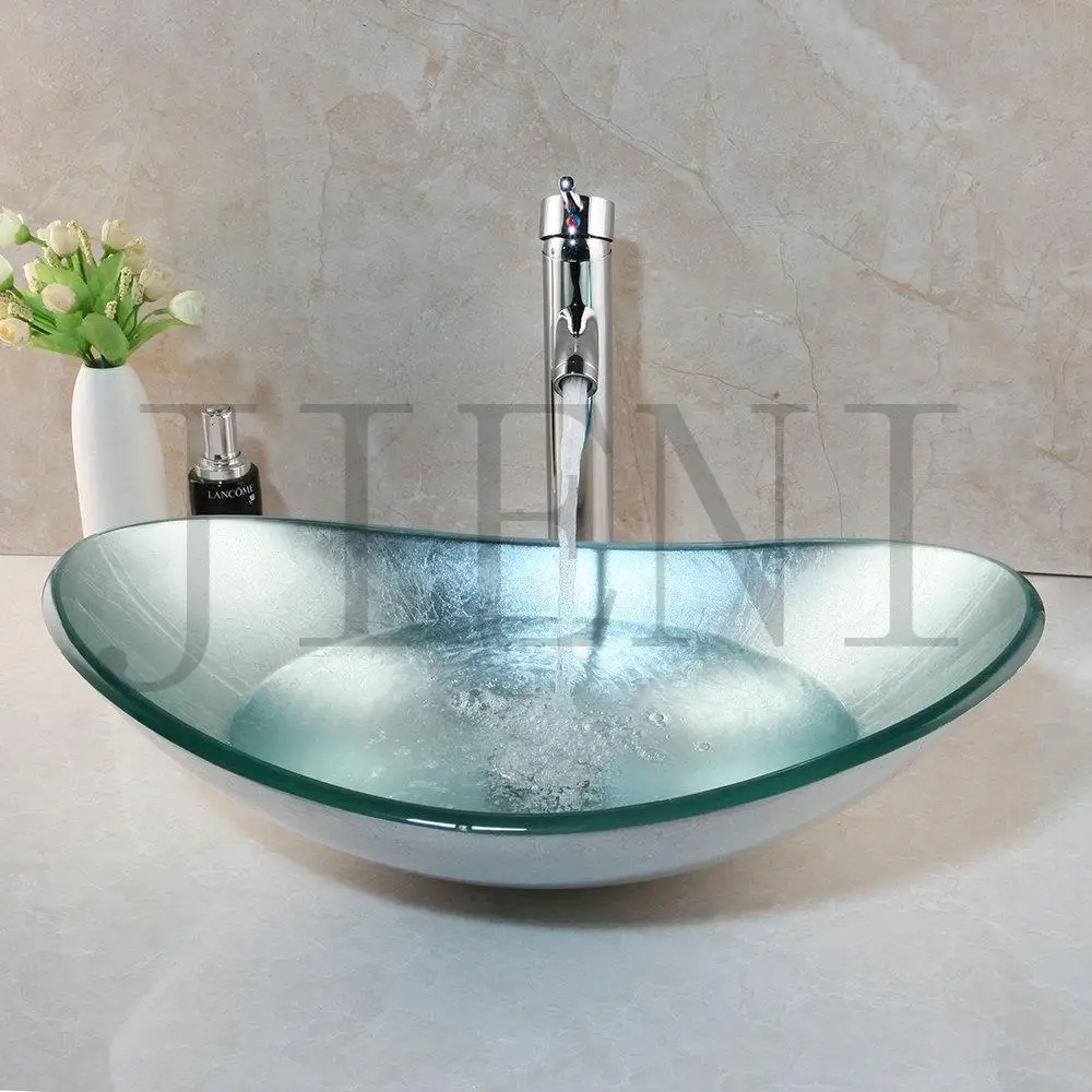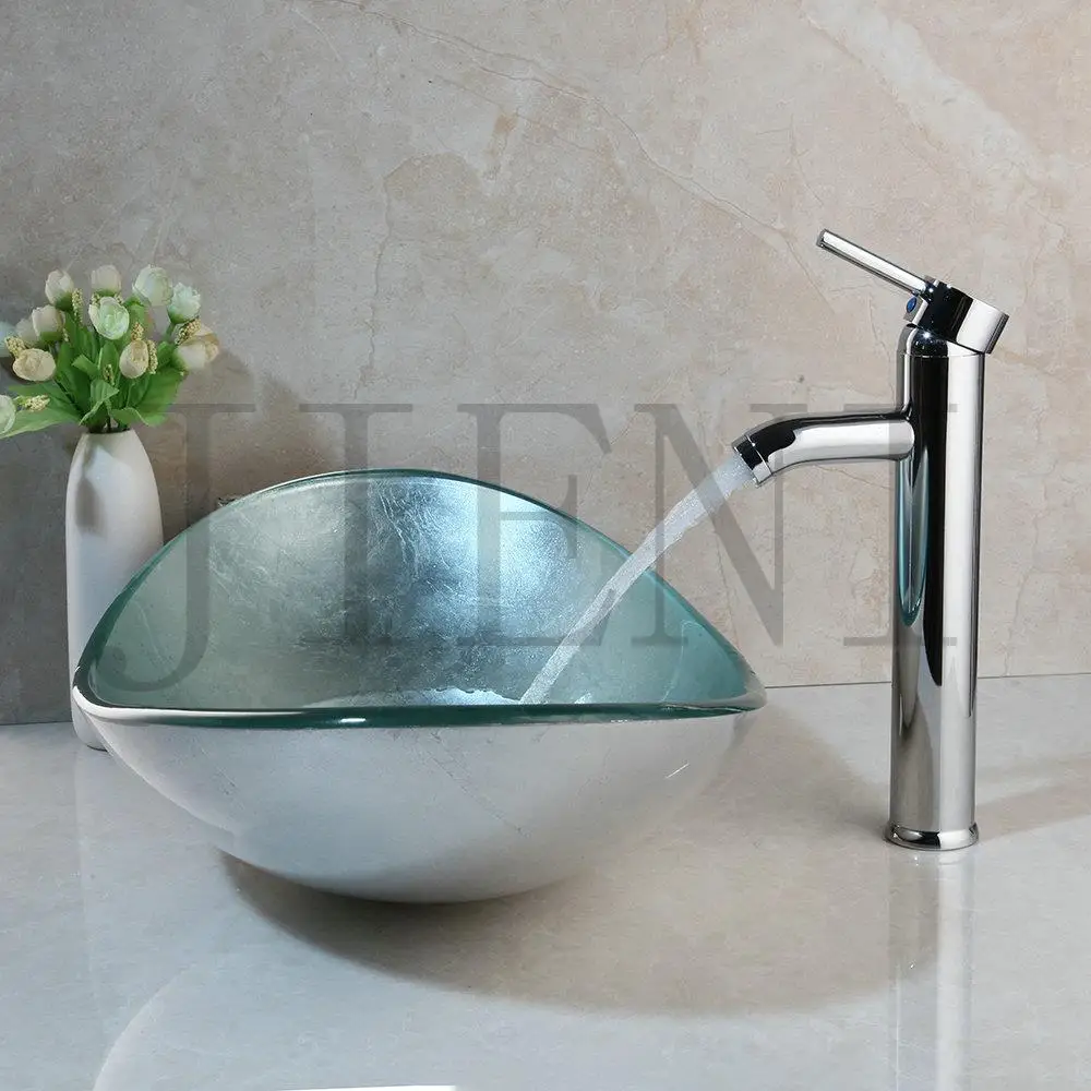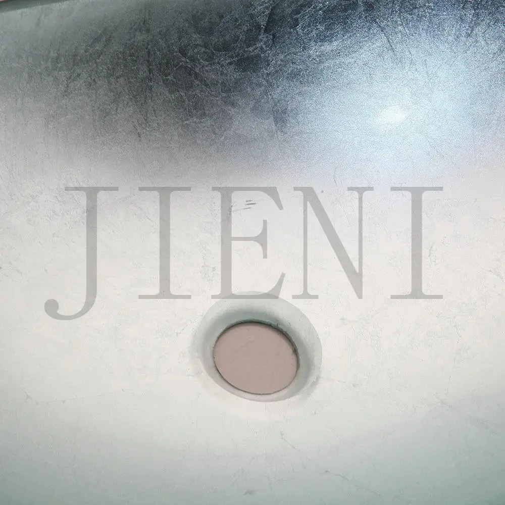 JIENI Silver Hand-Paint Art Bathroom Glass Basin Sink Faucet Round Basin Bath Vanity Chrome Brass Faucet Set Tap Mixer Set