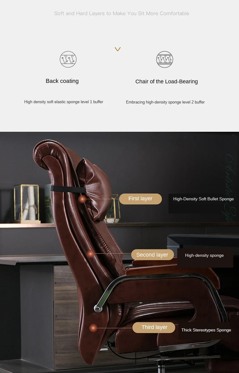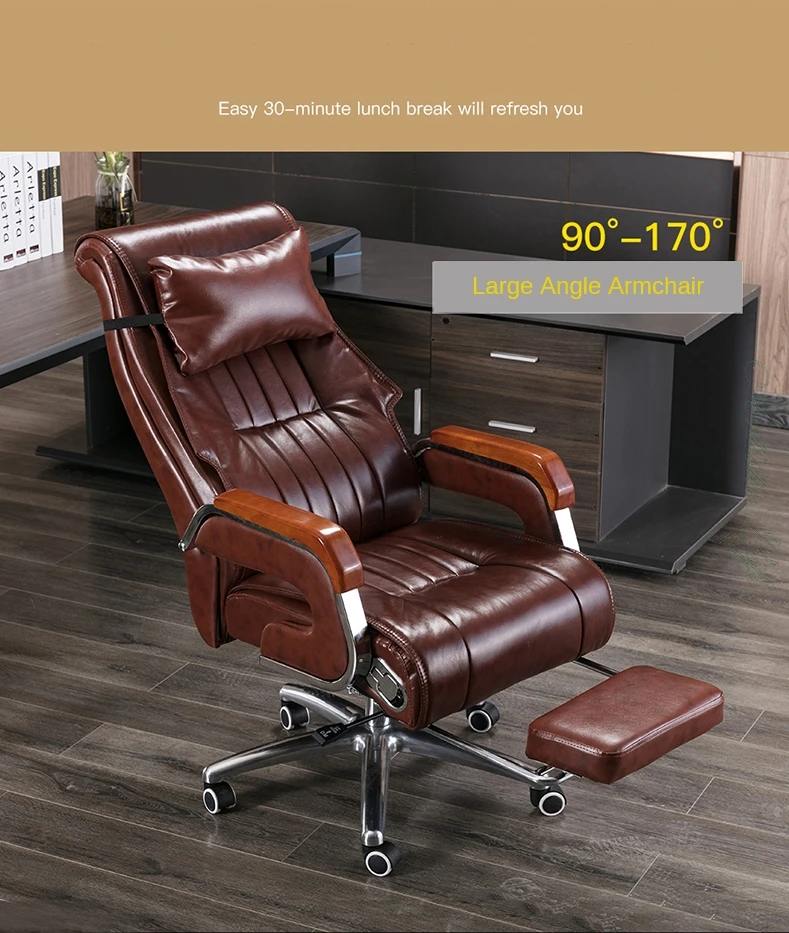 Kanbani Cowhide Boss Executive Business Office Chair Reclining Massage Comfortable Sedentary Chair Free Shipping