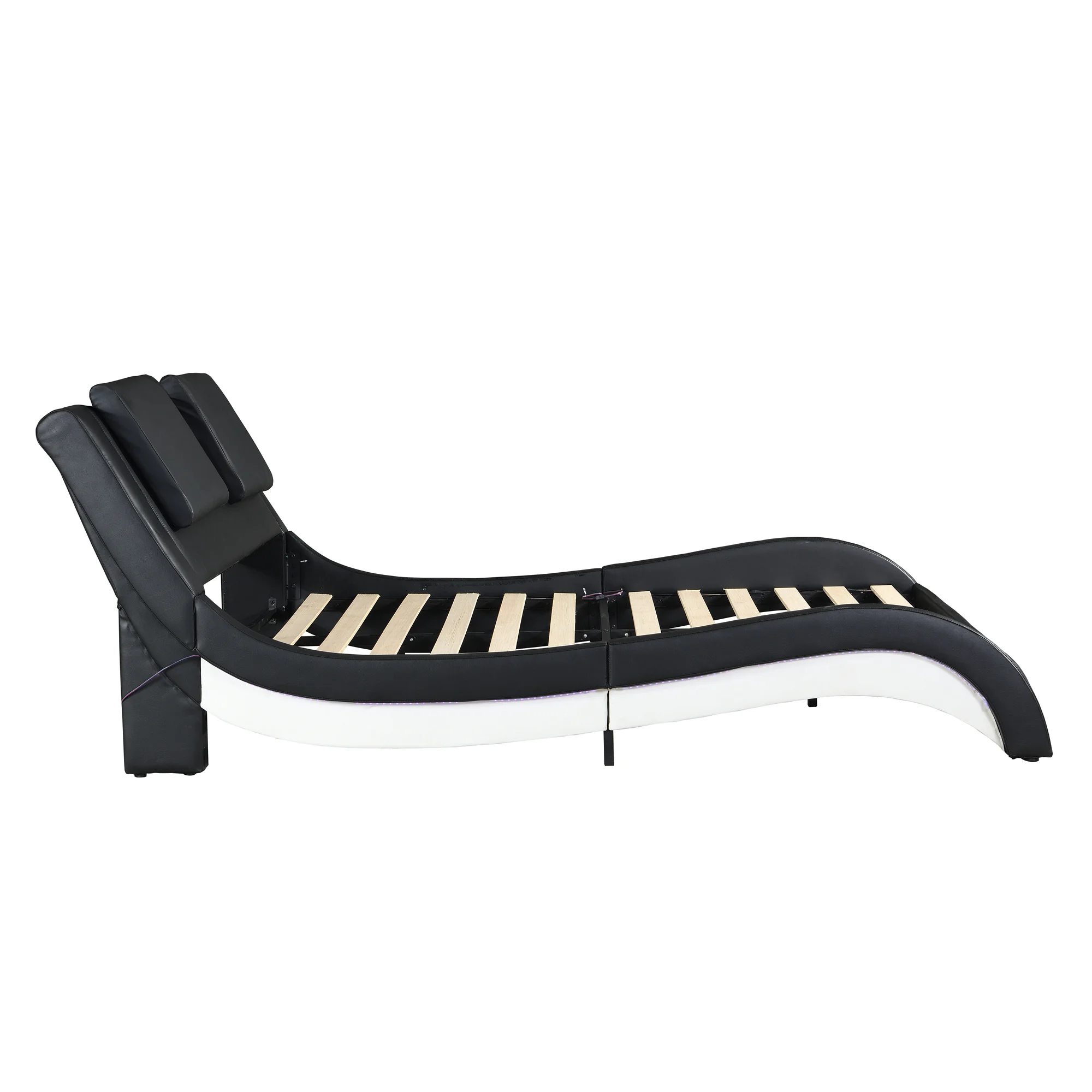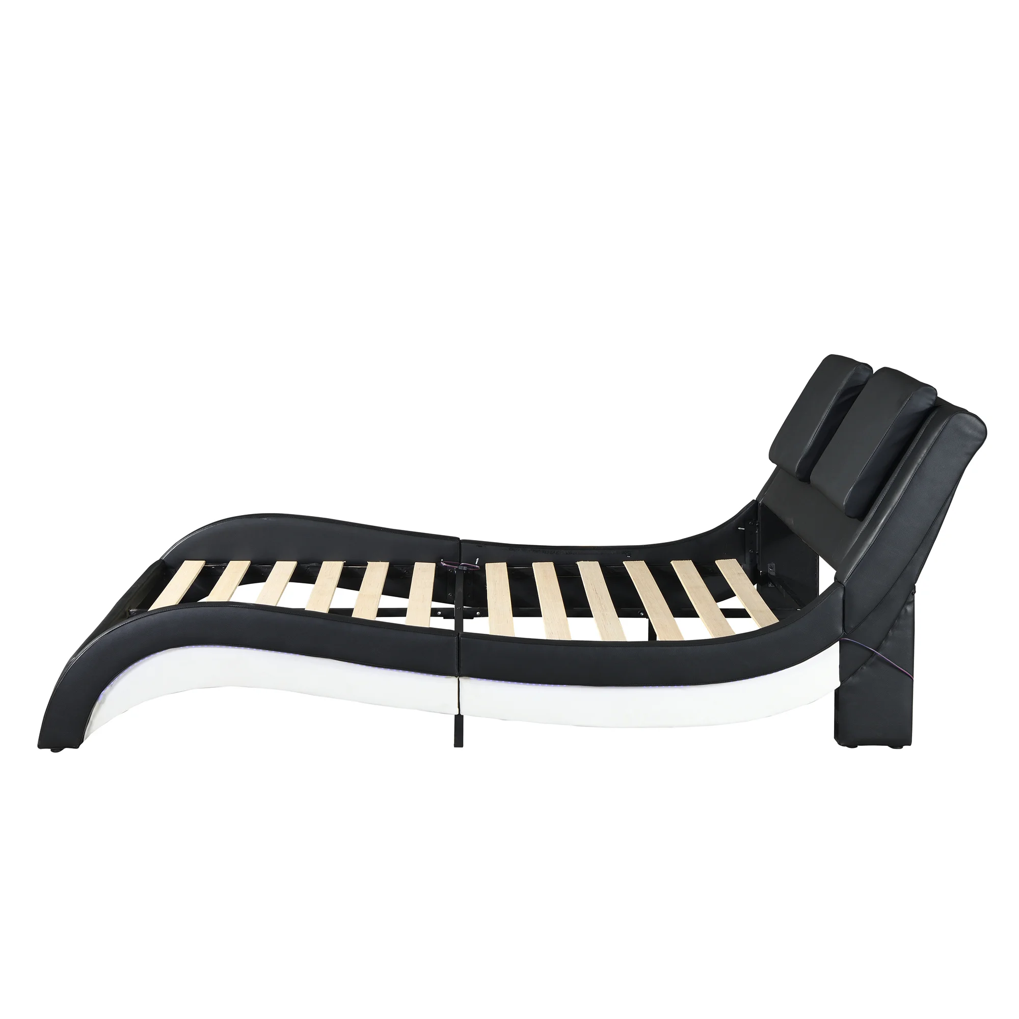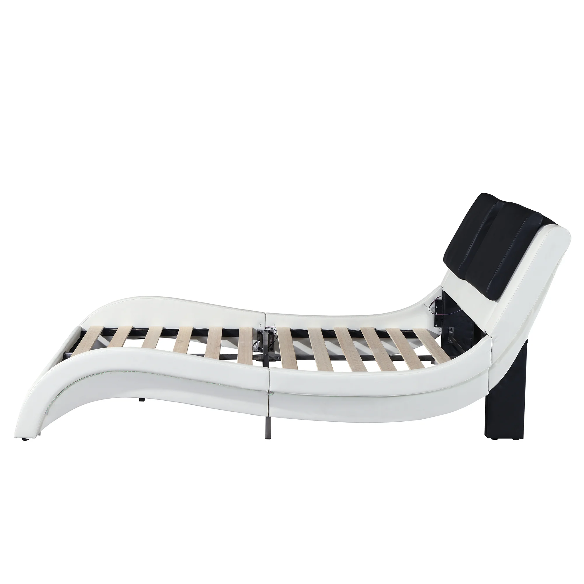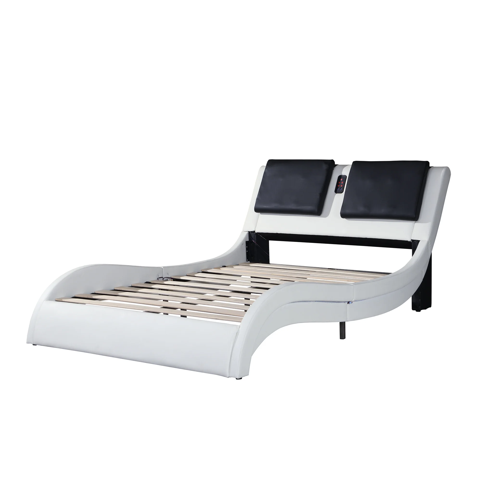[Flash Sale]King/Queen Faux Leather Upholstered Platform Bed Frame W/Led Bluetooth Connection Play Music Control Backrest Vibration Massage Curve Design Wood Slat Support White/Black[US-W]