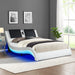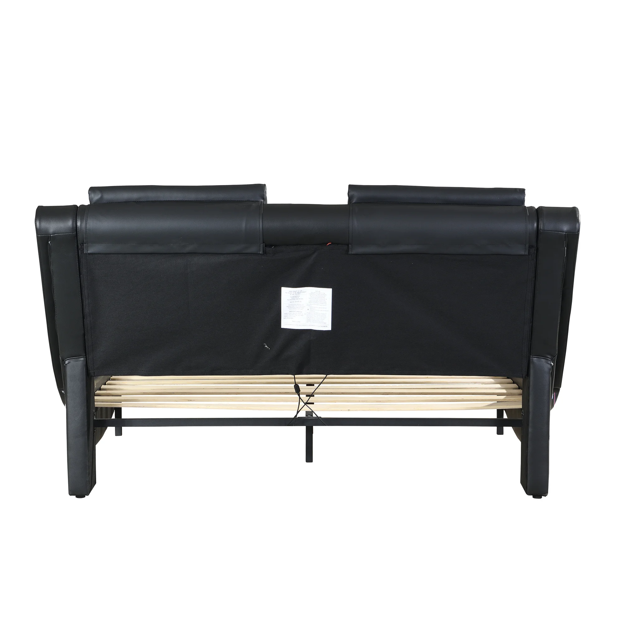 King/Queen Faux Leather Upholstered Platform Bed Frame W/Led Bluetooth Connection Play Music Control Backrest Vibration Massage