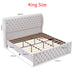 King/Queen Upholstered Wingback Velvet Fabric Chesterfield Bed W/Button Tufted Headboard Vintage Wings Blue/Black Wood Slat
