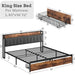 King-size bed frame,storage headboard with charging station,platform bed with drawers,no need for a box spring, easy to assemble