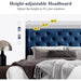 King size bed frame, velvet padded platform bed with adjustable diamond button tufting and nail head decoration headboard, bed